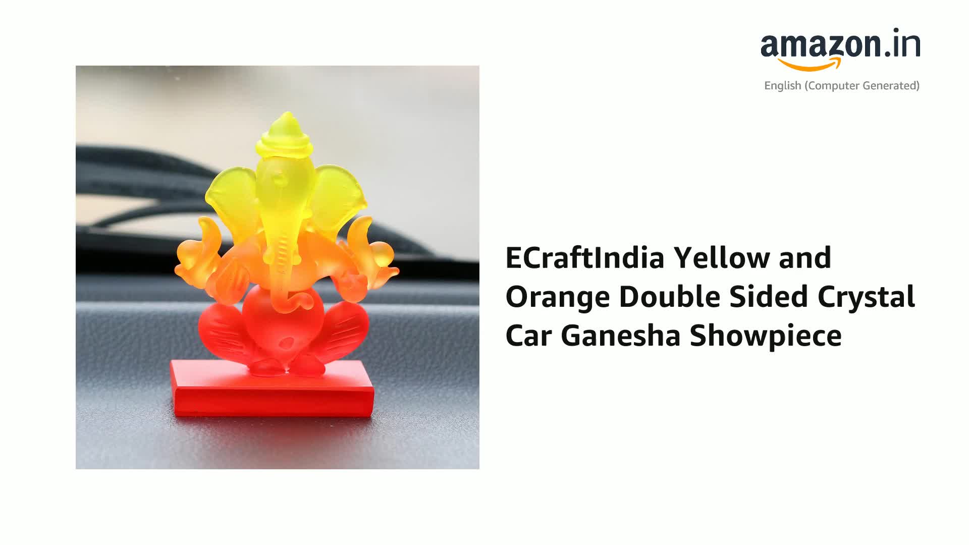 eCraftIndia Yellow And Orange Double Sided Crystal Car Ganesha Showpiece