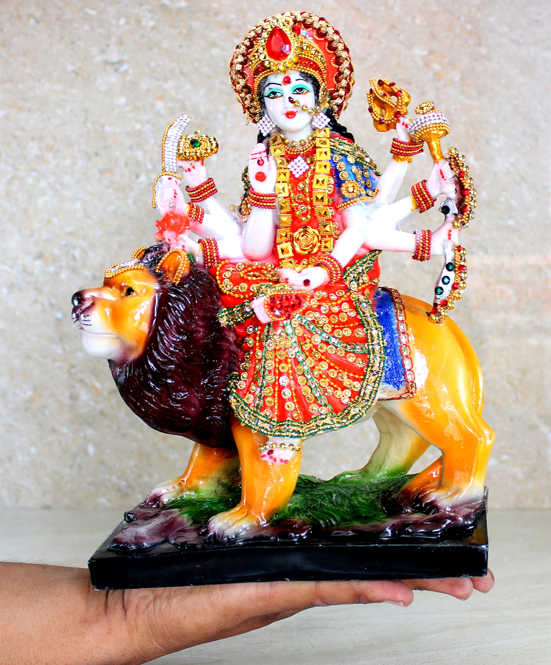 Goddess Durga Mata / Shera Wali statue made of Resin made using 100% solid Resin for your Home/ Workplace/ Office/ Desk/ Counter etc.