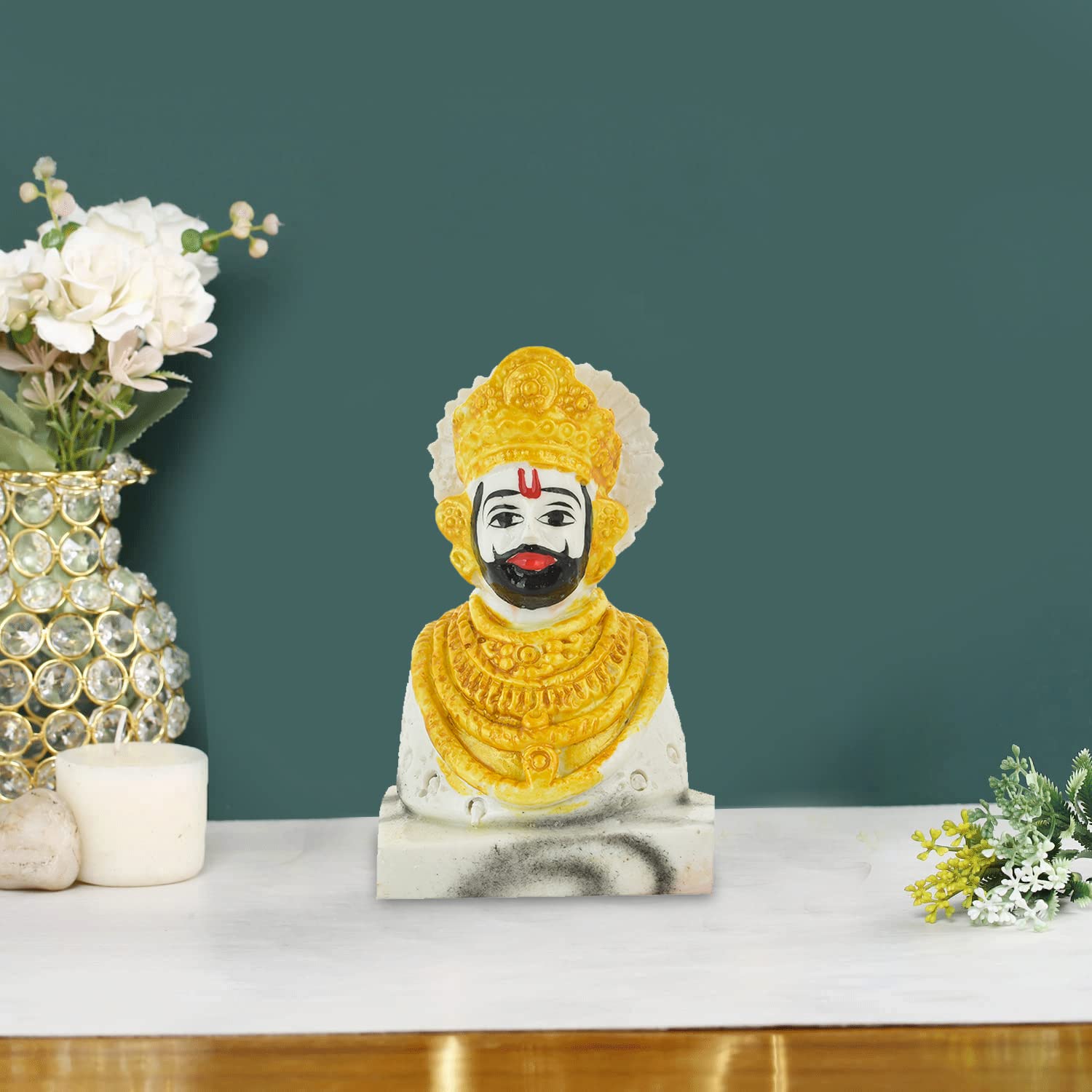 Archna Handicraft Polyresin Lord Khatu Shyam Baba Ji Murti Figurine Idol Statue Pooja Gift Home Décor Showpiece (4x3 Inch)