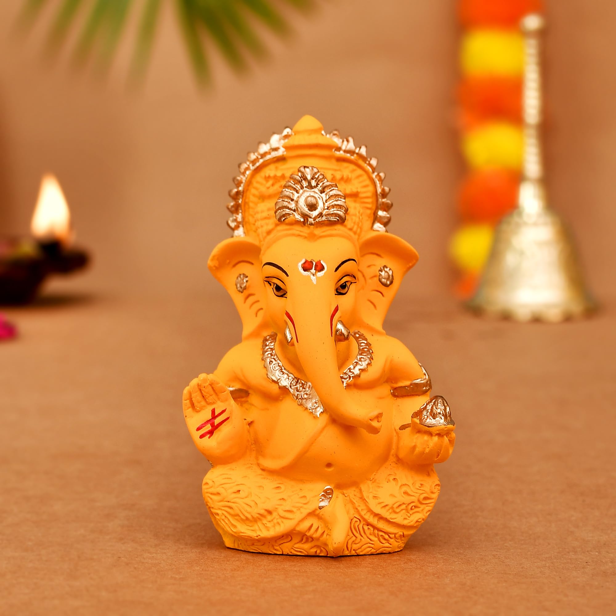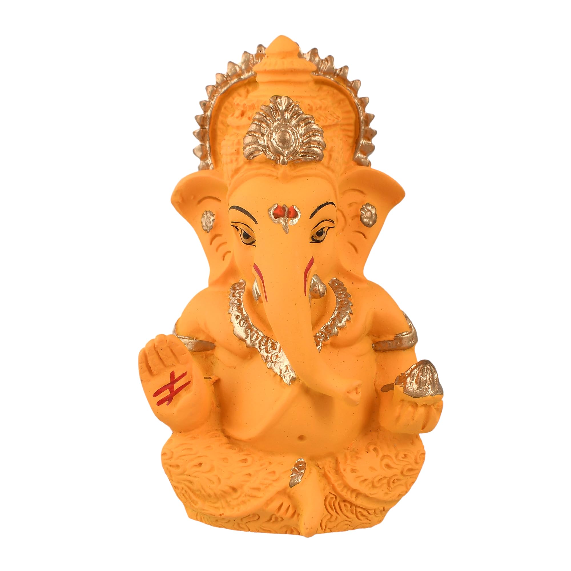 Spread a positive vibe in your living space with these heavenly and divine idols.Such a wonderfil piece for Ganesh idol for car dashboard table decor and for pooja. Elegantly shaped to capture the essence of spirituality these idols are a good choice to have in any setting. From various sizes and designs to choose. Ganesh Sculpture can certainly be used for good Fengshui. In fact feng shui being the art of creating harmonious healthy and prosperous environments is open to using any symbols images and ideas that work for the home owner. Exquisite Ganesh Idol: Enhance your car's interior with a beautifully crafted Ganesh idol adding a touch of elegance and spirituality to your car dashboard.: This Ganesh idol features intricate detailing capturing the essence of Lord Ganesh's divine attributes and showcasing skilled craftsmanship.