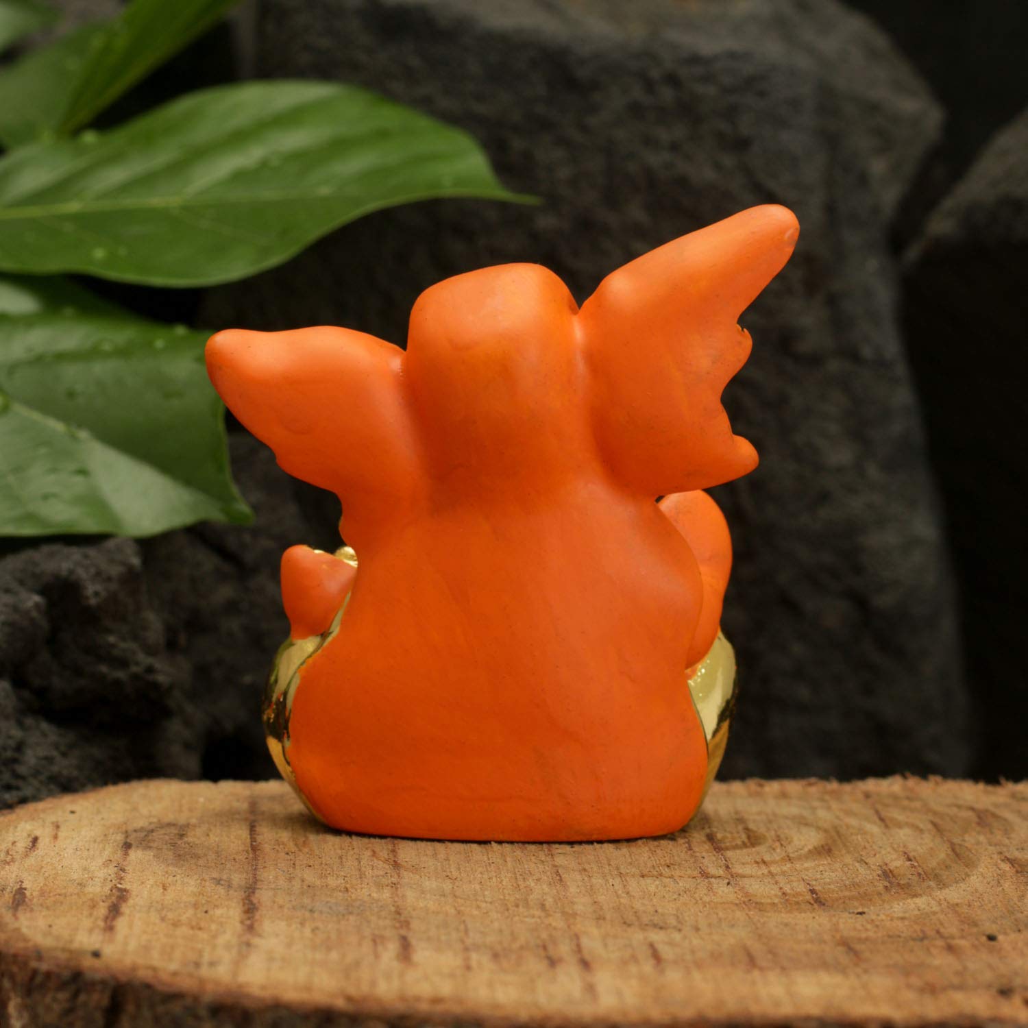 Gold Plated Red Terracotta Ganesha Statue for Car Dashboard God Ganpati Idols Home Office Decor (Size 7cm x 6cm)