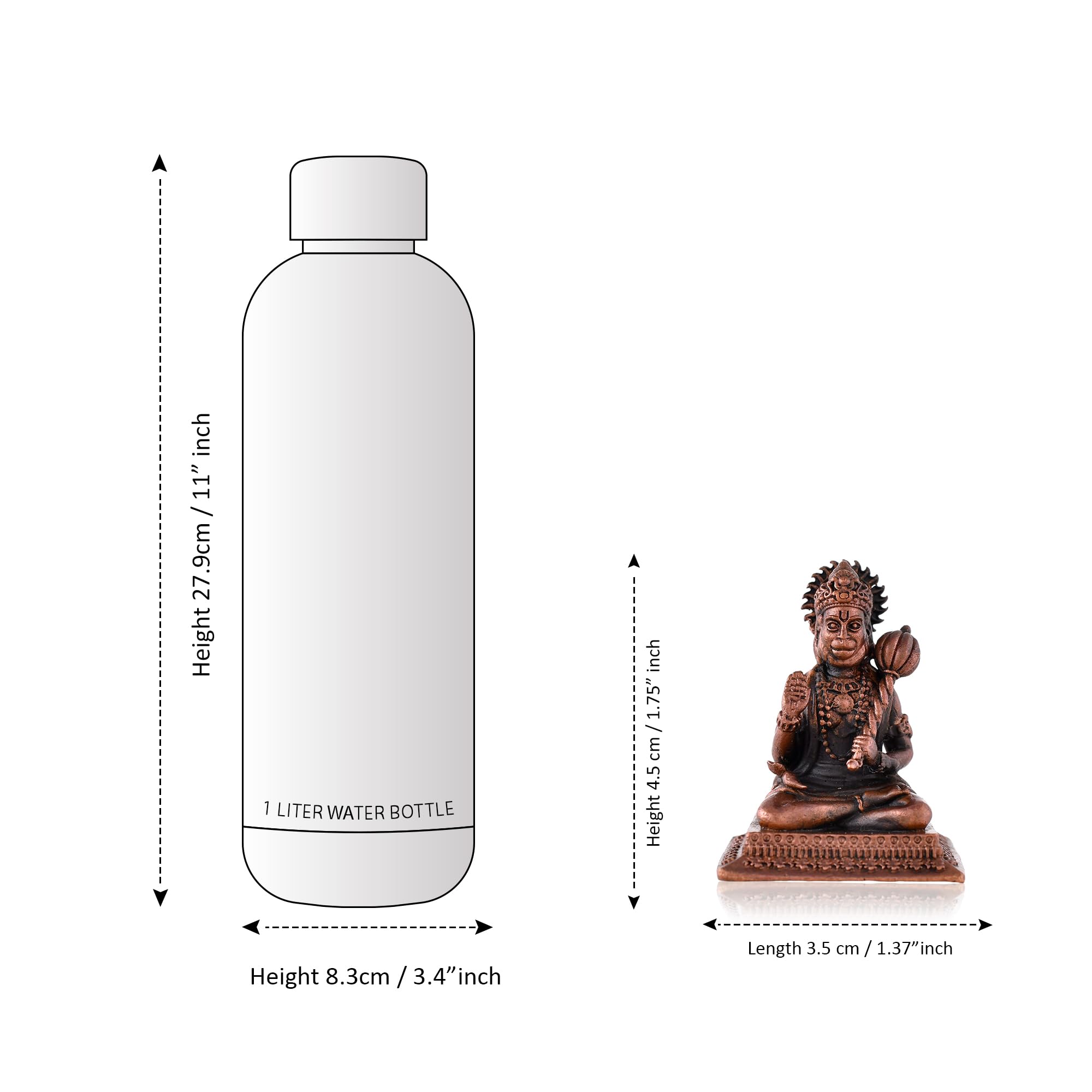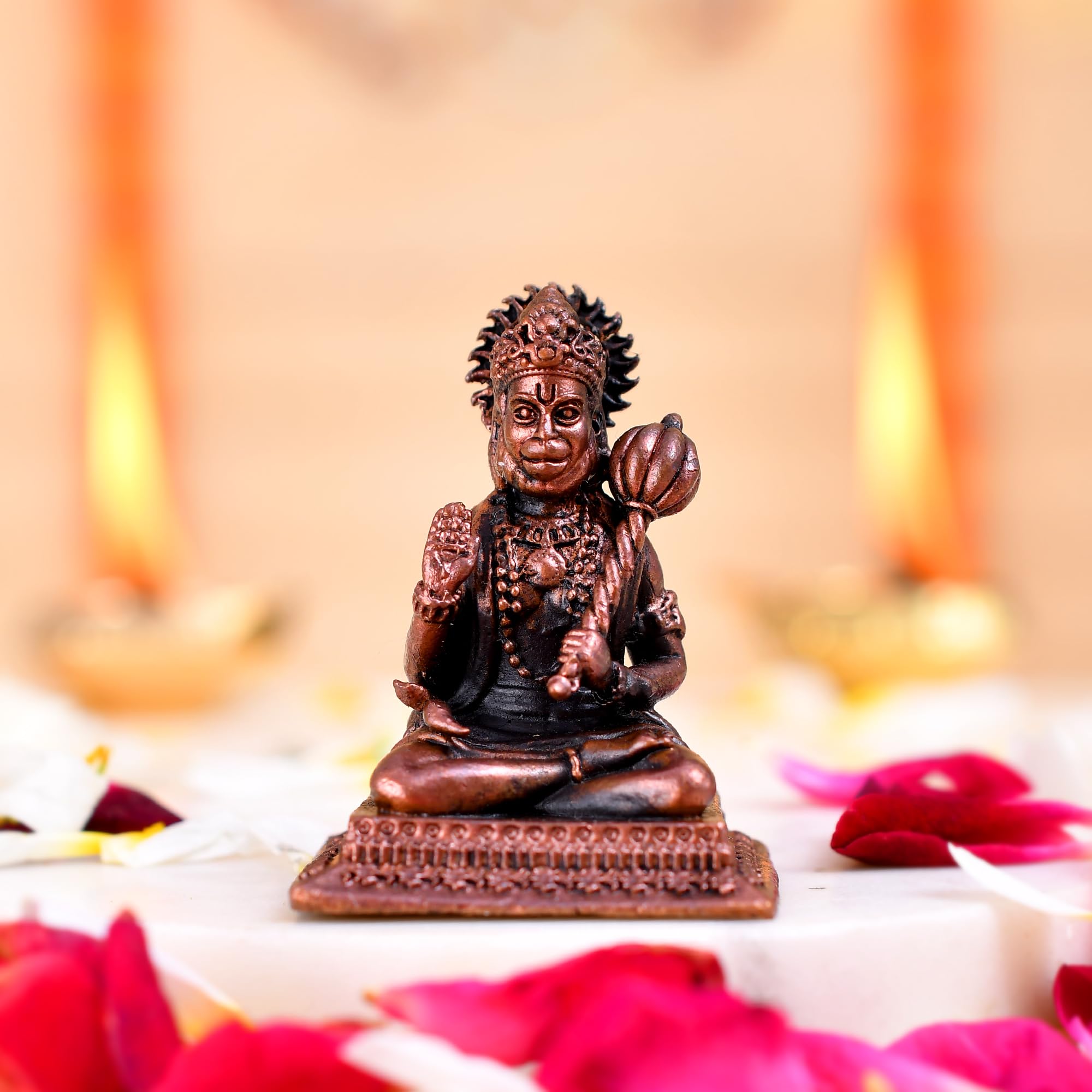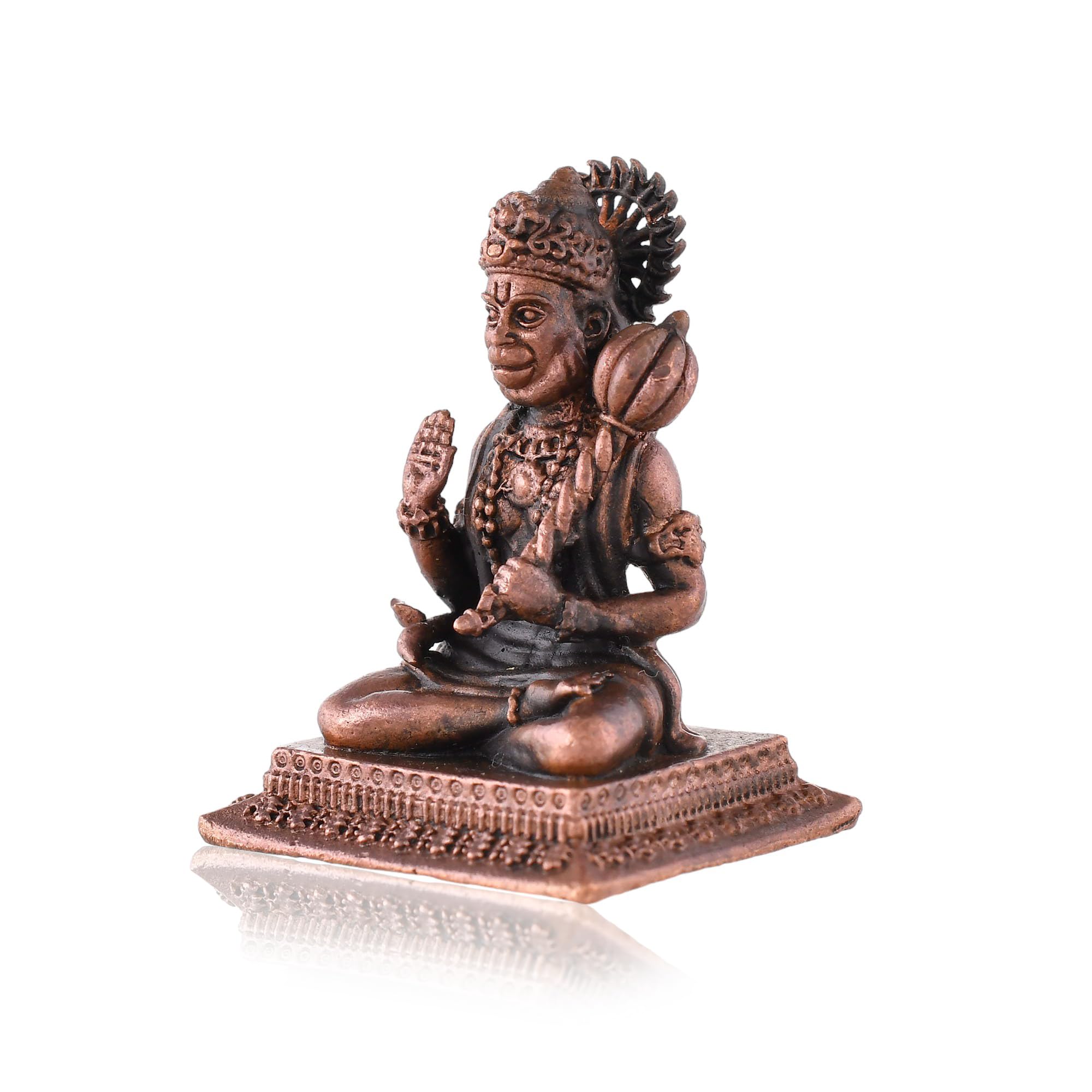 A beautifully crafted copper idol of Hanuman Ji is the perfect addition to any car dashboard office table or small temple. This exquisitely designed deity figurine captures the essence of devotion and strength making it an ideal symbol to adorn your space. The idol made from durable and resilient copper material ensures longevity and ease of maintenance allowing you to cherish its presence for years to come. Its intricate details and vibrant colors make this Hanuman Ji idol not just a decorative piece but also a source of inspiration and spiritual solace. The idol's small size is perfect for a car dashboard where it can serve as a constant reminder of faith and protection during your journeys.