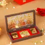 INTERNATIONAL GIFT® 24Karat Gold Plated Laxmi Ganesh Sarswati God Idol with Charan Paduka | Devotional Prayer Box (13h X 21w X 11.5l Centimeters) Gifting | Pooja Mandir | Home Dcor