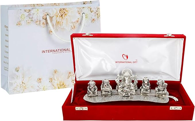 HomeHomeSpiritualIdolsINTERNATIONAL GIFT® Silver Plated Musical Ganesh God Idol Statue Oxidized Finish with Beautiful Velvet Box Packing and with Carry Bag (8H x 28W x 6L Centimeters)