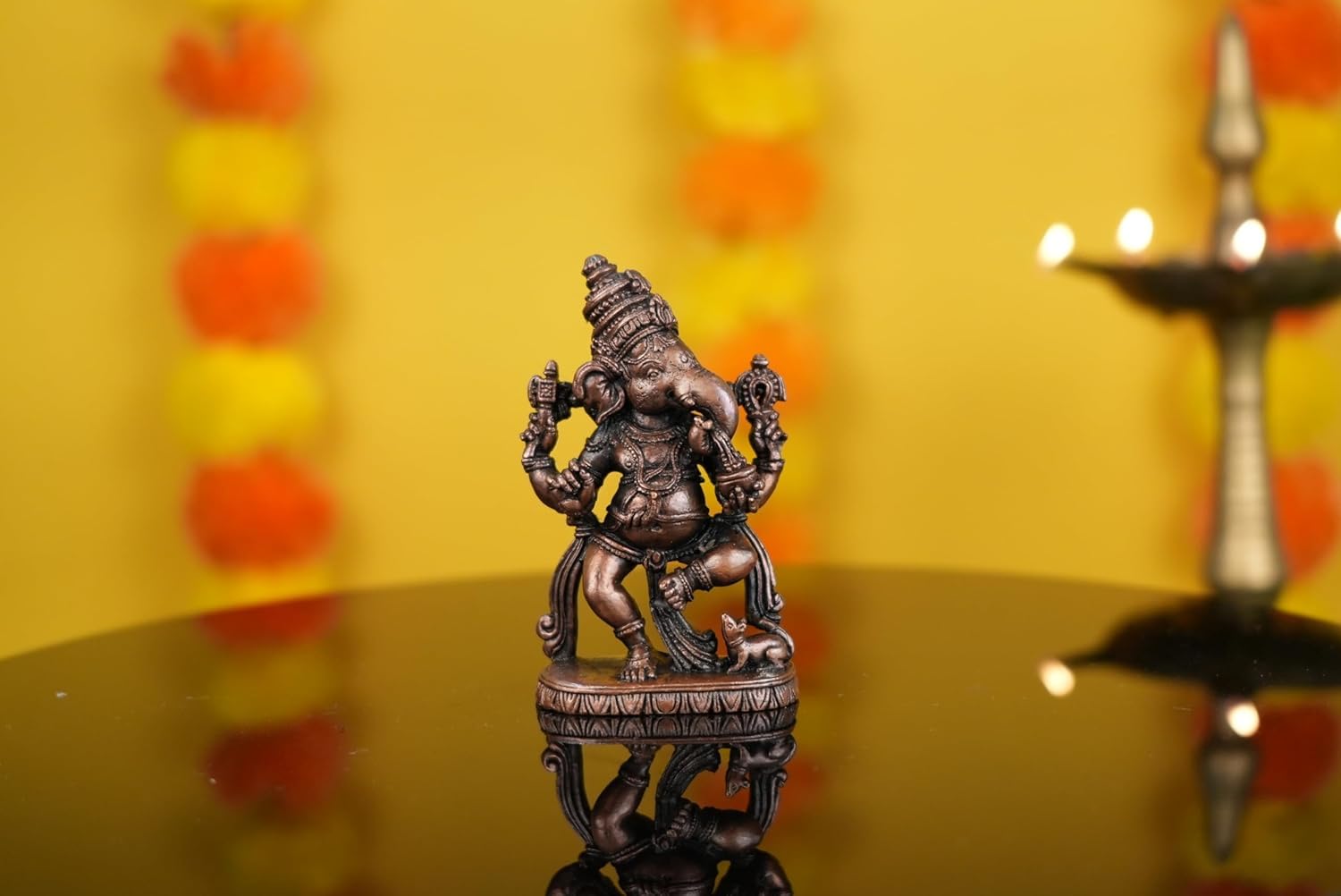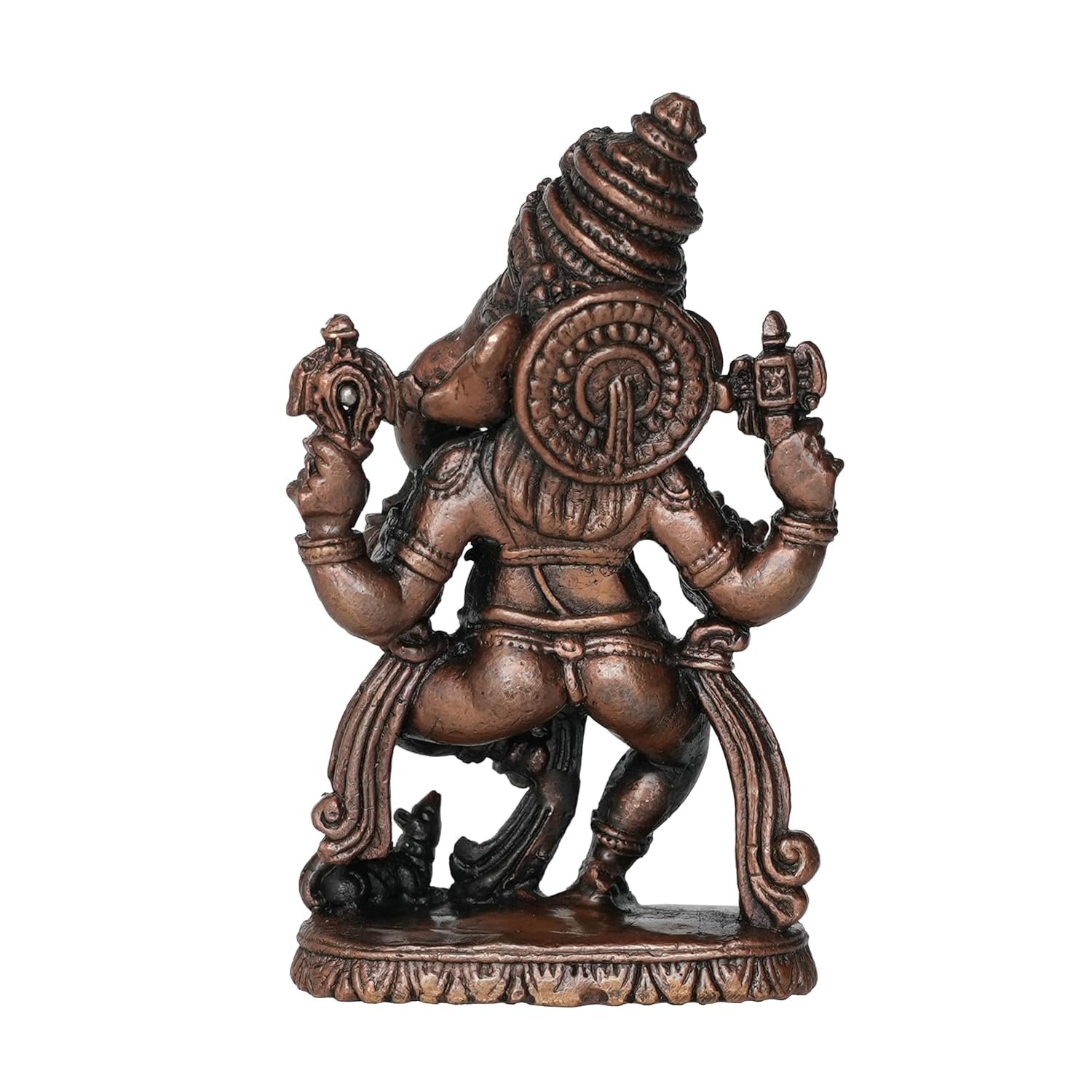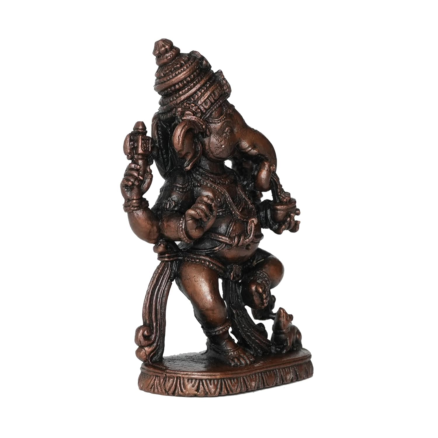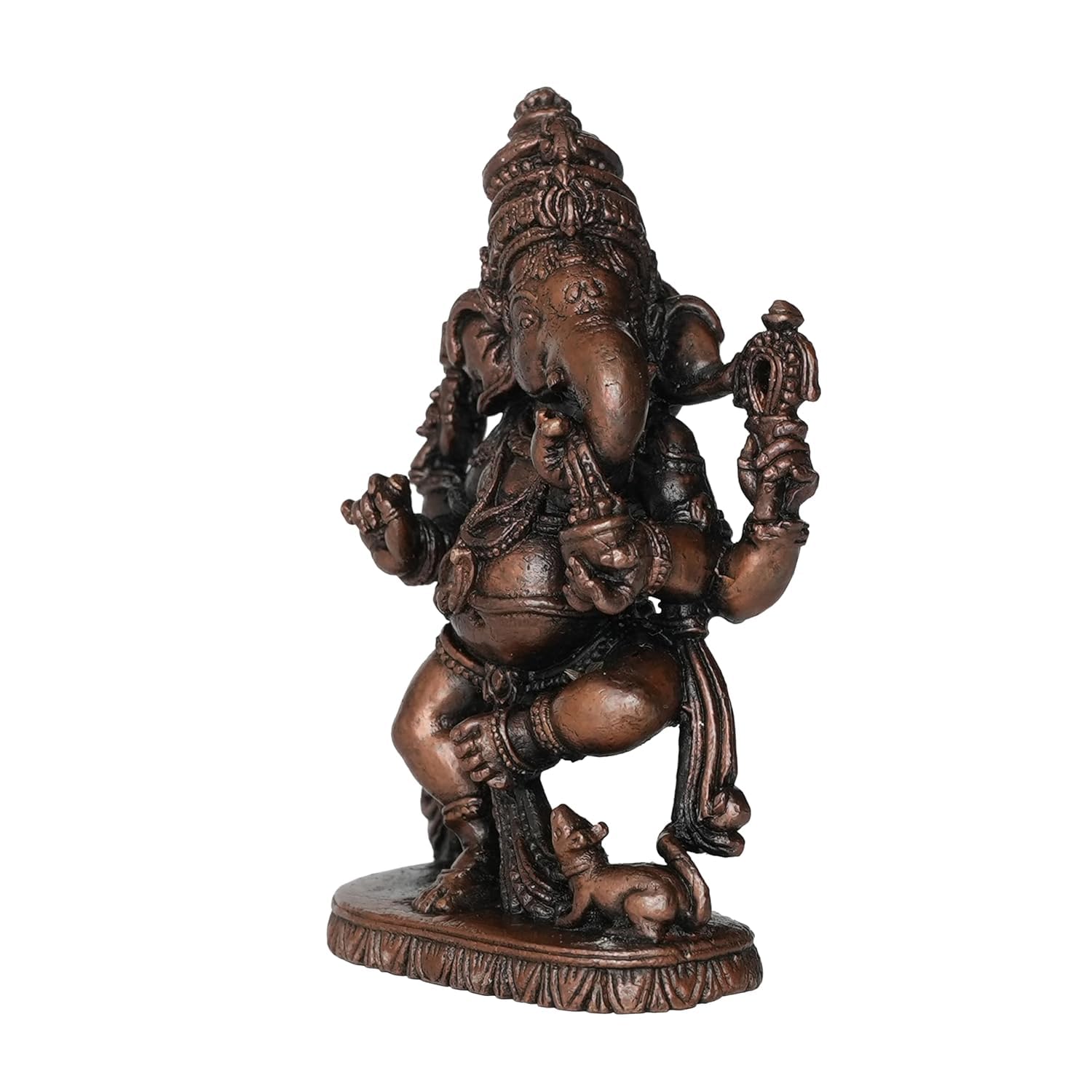 Copper Ganesha Ganpati Idol Murti Statue for Home Pooja Puja Mandir Decor Collectible Handicraft We have a range of various products that worship and decorate your homes with ease in the festive season with exceptional corporate gifts return gifts gifts for every occasion like marriage engagement. Also check our festival products for Diwali Navaratri Holi Ganesh Chaturthi Shravan month Shivratri Janmashtami and many more. Not just this we also have perfect Copper pooja/puja samagri along with that you will find Hindu divinities whether it's Maa Laxmi Ganesh Maa Durga Krishna Sai Baba Hanuman Kartikeya Sai baba Jesus or Lord Shiva many leadersâ statues like Gandhiji Sardar Patelâs Statue of Unity (SOU) Vivekanand Ambedkar Gautam Buddha and many more. Made from Brass Each of these products are made of solid brass with carefully designed products suits for every possible place that this art can fit This Statue is durable and long-lasting Made from Copper Each of these products are made of solid brass with carefully designed products suits for every possible place that this art can fit This Statue is durable and long-lasting Measuring 4.82 Ã 2.28 Ã 7.87 (L Ã W Ã H) Cm and Weighting 215 Gram. This statue is substantial and impactful. Clean by Dry Cloth and Use Pitambari Powder Specially for Brass Material