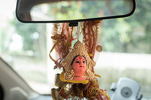 Karru Krafft Handmade Terracotta Hanging Goddess Durga Maa Face for Car Decor Wall Decoration and Pooja Décor