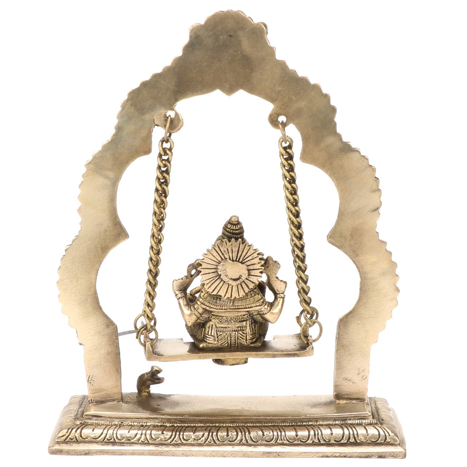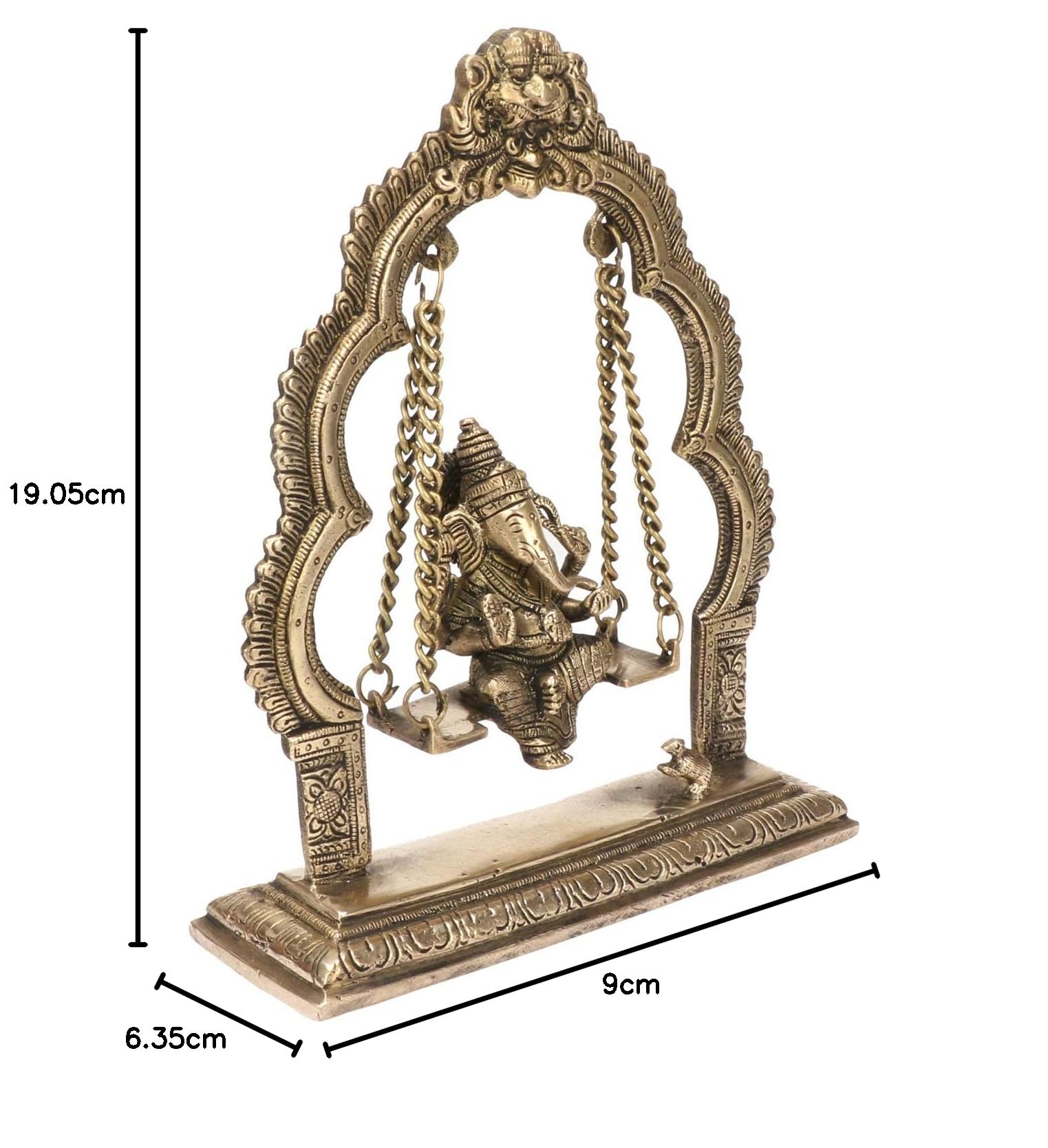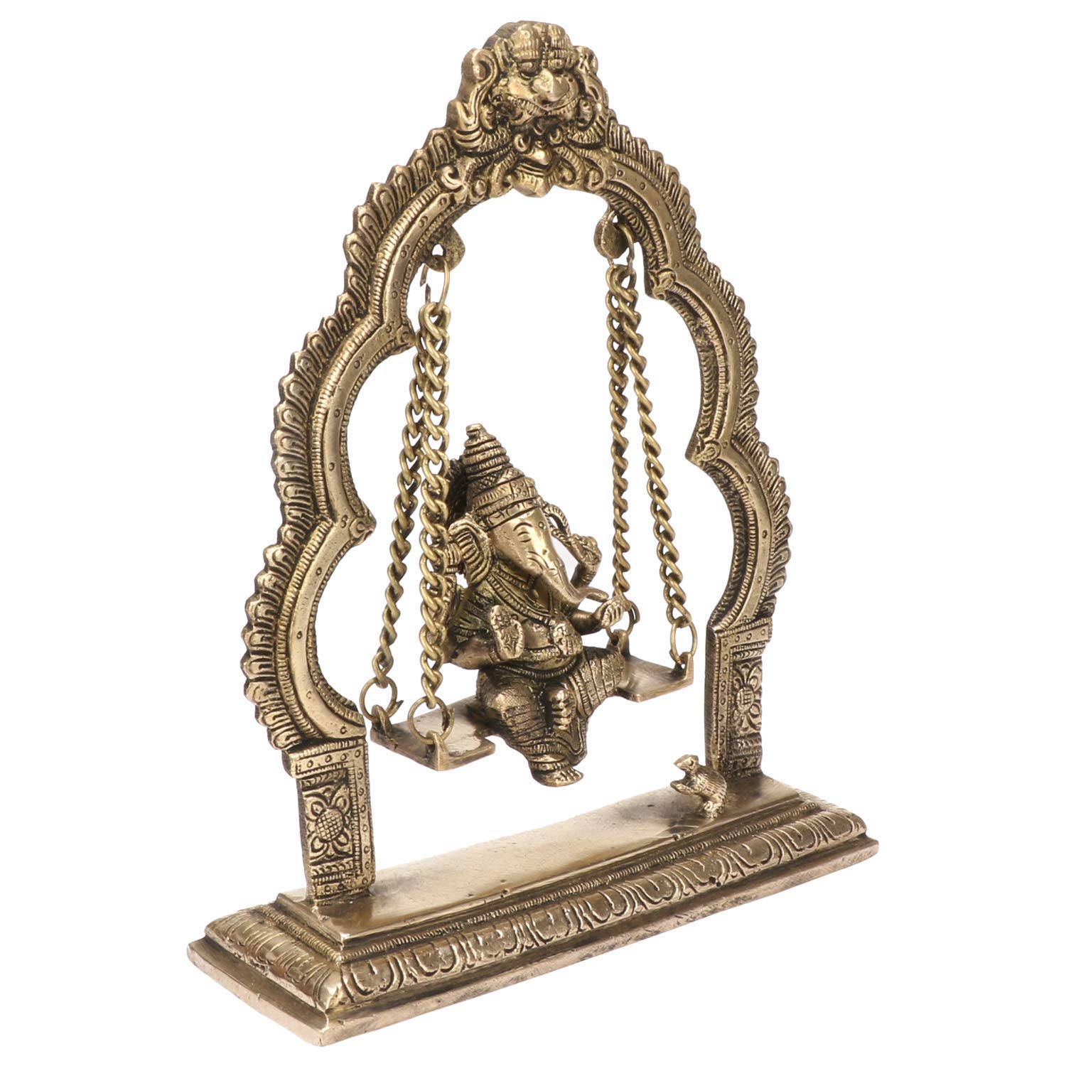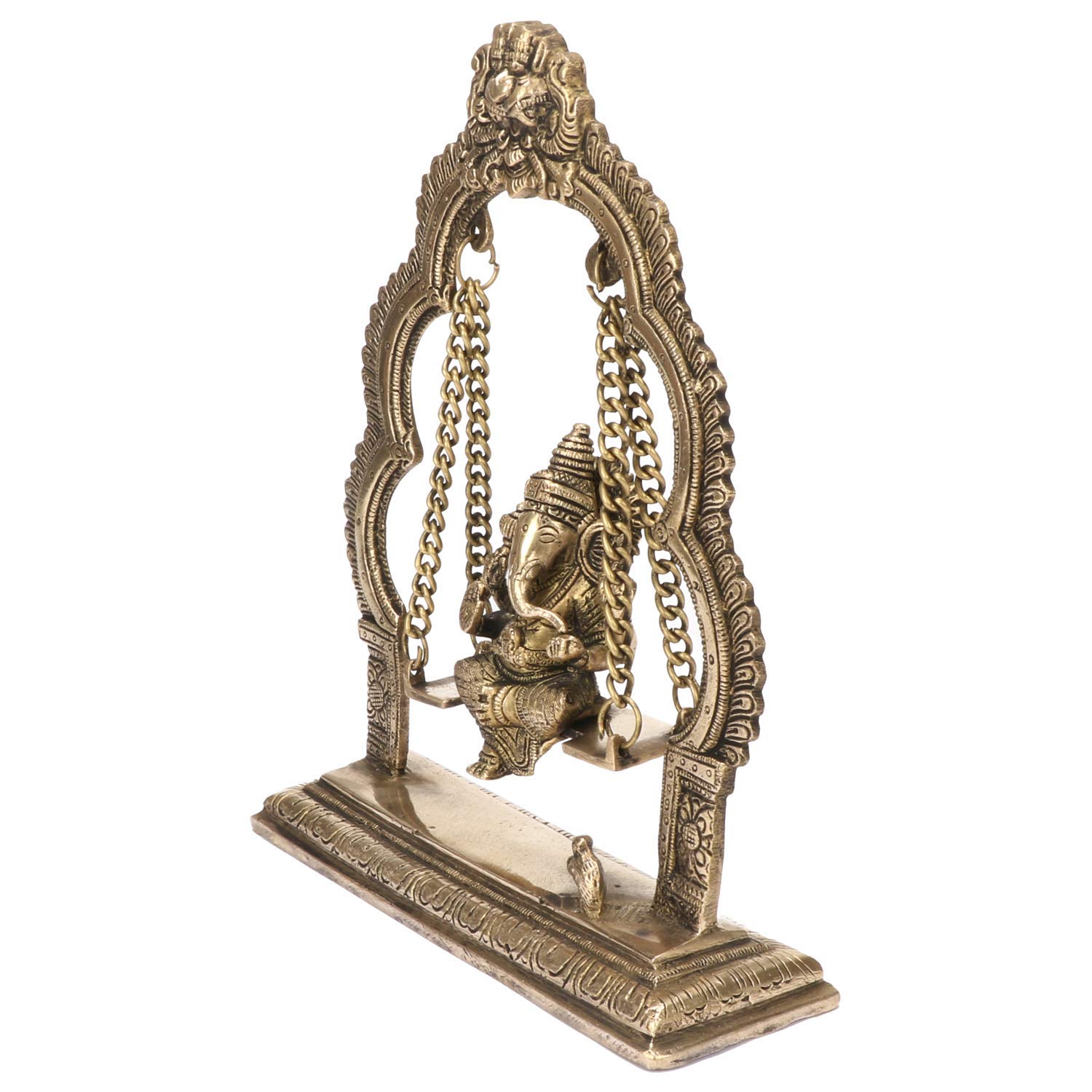 This is a beautiful unique & gorgeous hand work on solid metal figure of Ganesha on Jhula Swing. Bless your place and heighten the beauty and spirituality of your house or work place with this Handmade God Ganesha Sculpture.Ganesha is the remover of obstacles the deity whom worshipers first acknowledge when they visit a temple. He is worshipped for success (siddhi) in undertakings and intelligence (buddhi). He is worshipped before any venture is started. He is also the God of education knowledge and wisdom literature and fine arts. Ganesha is the legendary scribe who using his broken tusk which he often holds wrote down parts of the Mahabharata epic.This Handmade God Ganesha Sculpture is fully artisan crafted in India making it a truly authentic figurine. This Handmade God Ganesha Sculpture is designed in metal using sand casting technique and has a golden color to it.Place this calm art piece in your living room for an effervescence beauty or gift it to your loved ones before he/she enters a new phase in life. It represents the power of the Supreme Being who removes obstacles and ensures success in human endeavors.Complete the decor of your home in the utmost of style or add some Indian flair to your living room decor.