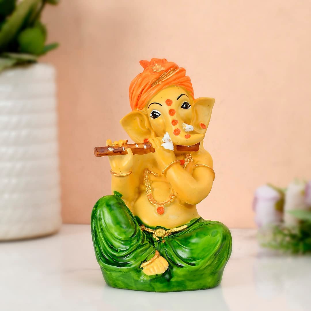 KHURJA POTTERY Ganesha Idol for Home Decor Ganesh ji murti with Harmonium Statue for Home and Office Decor Green 5.5 Inch