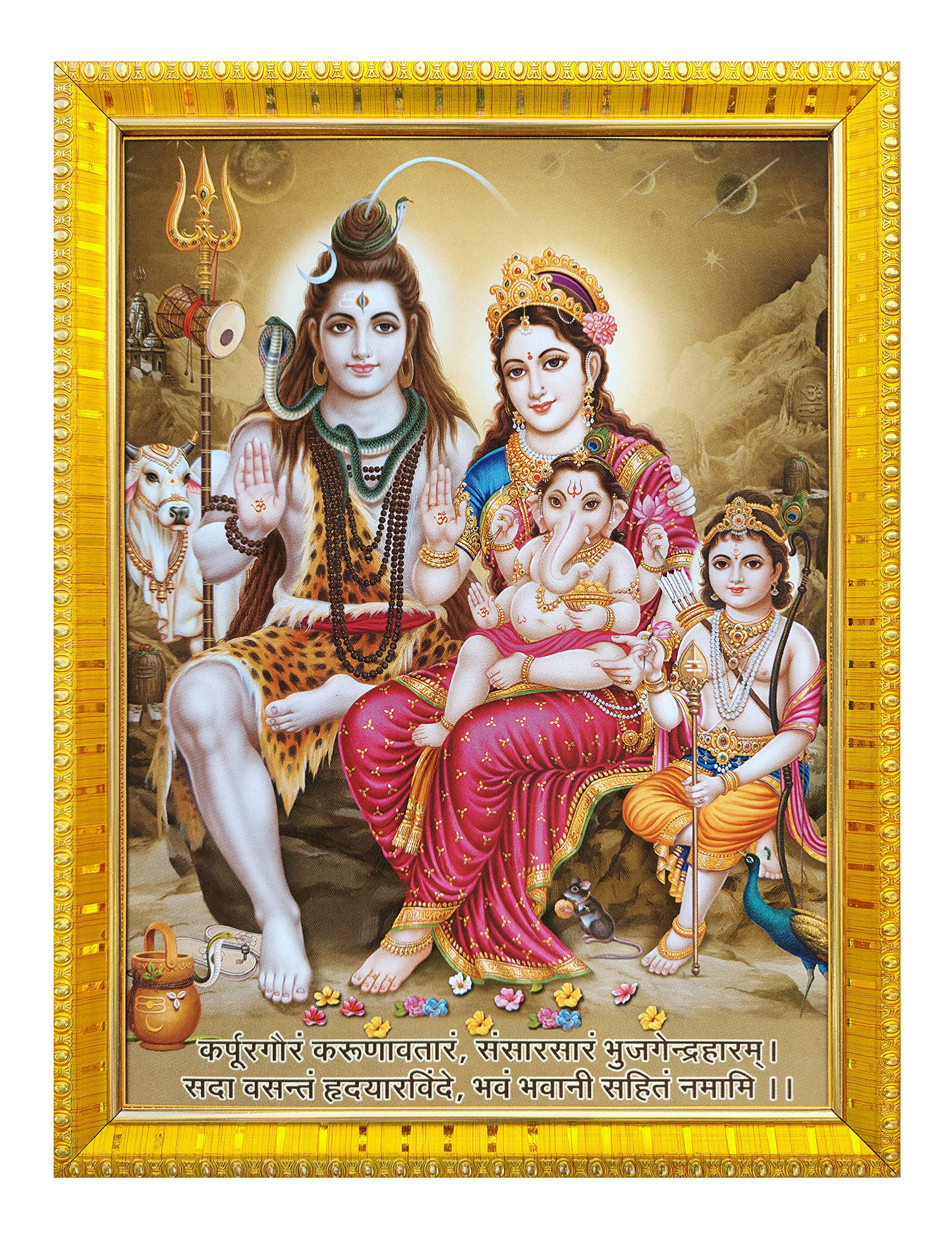 Hindu GOD/Goddess Photo FRAME with Laminated PosterMaterial : Premium quality Photo With beautiful Golden Wooden Frame. Subject : Wall Dcor / Hindu God.Dimension : 30 cm x 23 cm x 1.25 cm *. Premium quality Lamination on Poster.* Lamination Preserves Poster Beauty* Lamination improving Poster appearance* also make Poster damage and waterproofeasy to clean & never-ending beautiful look. Easy to hang on wall.Make in indiasanitize before and after packing