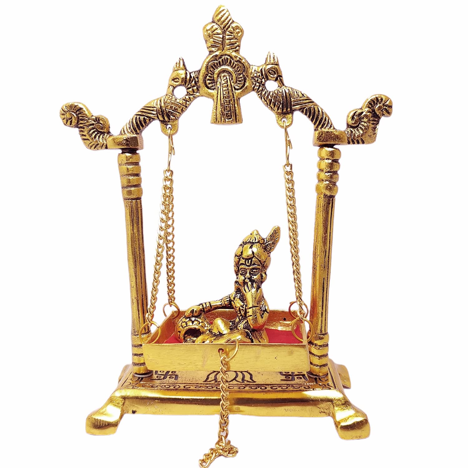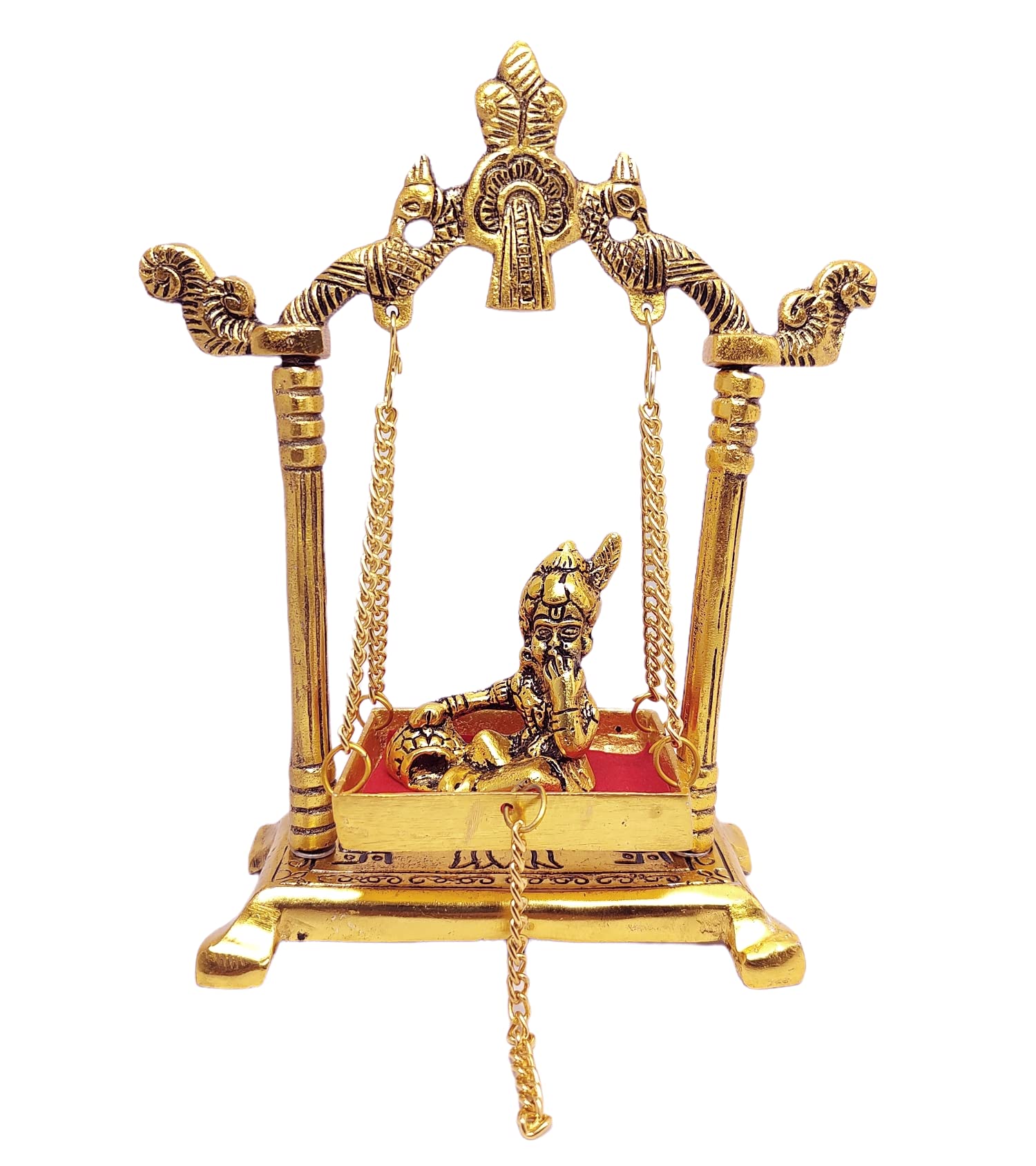 HomeHomeSpiritualIdolsKridayKraft Laddu Gopal on Jhulla Palana Metal Statue Gold Plated Decor Your Home,Office metal Krishna Murti,Showpiece Figurines,Religious Idol Gift Article.