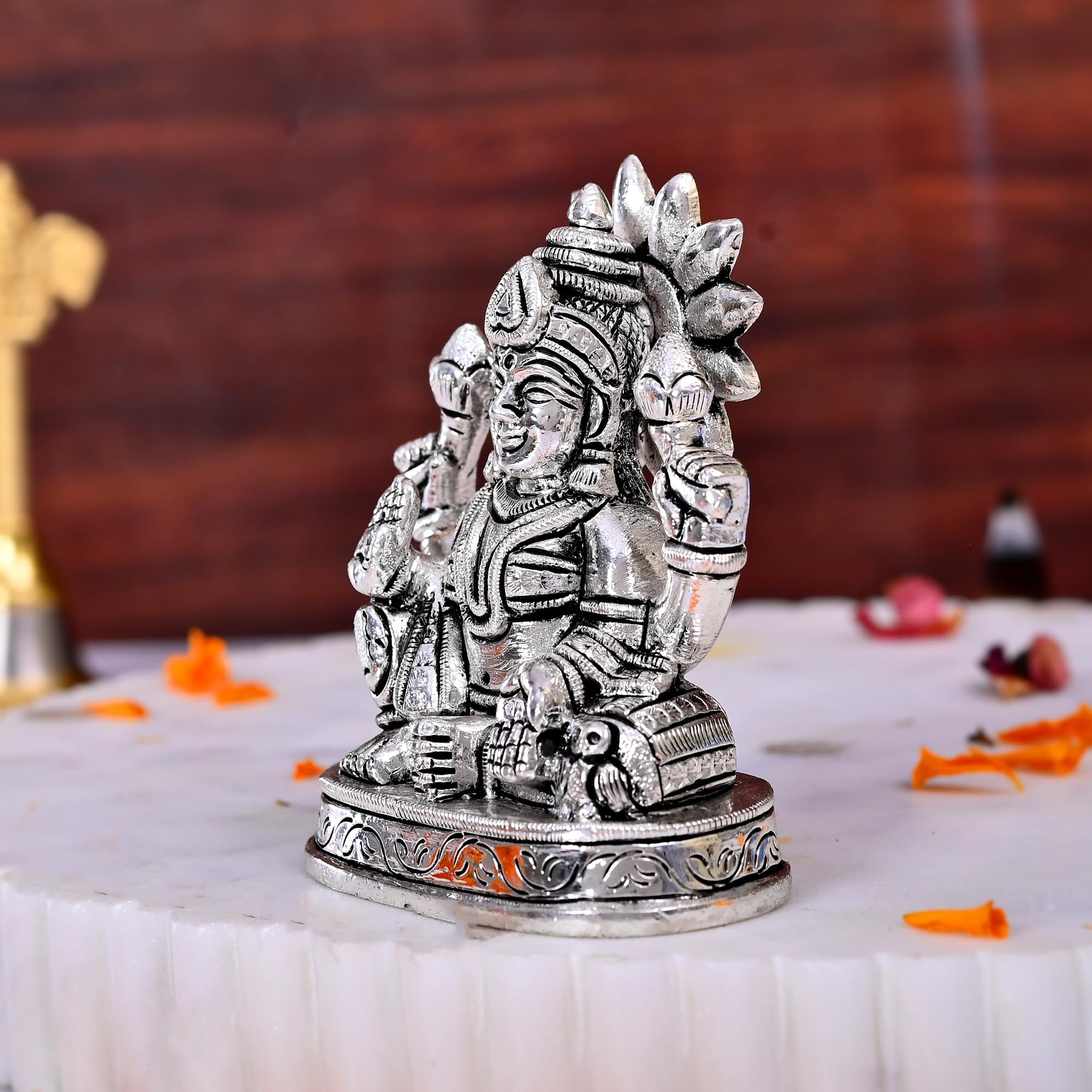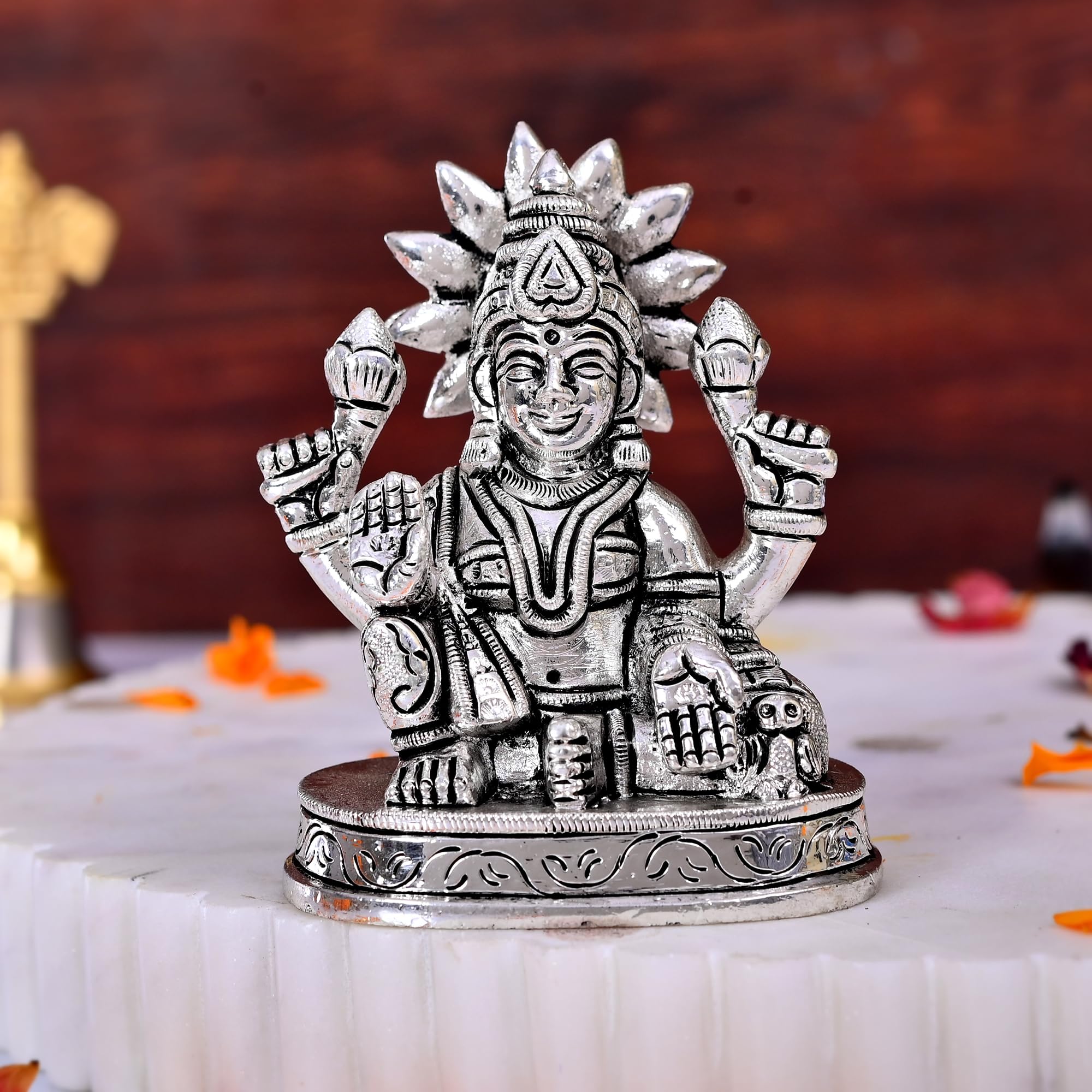 Bring the blessings of wealth prosperity and well-being into your home with this beautifully crafted Laxmi Idol Murti. Known as the fortune and abundance Laxmi who grants prosperity material wealth and happiness. This stunning silver-polished Laxmi Murti is an ideal piece for your pooja room or temple space a small yet powerful symbol of grace and divine blessings. The intricately designed Laxmi Murti is not just a sacred idol but a work of art that reflects the devotion and skill of traditional artisans. The radiant silver finish enhances the beauty of the idol making it a captivating addition to any spiritual or decorative setting. Perfect for homes offices or temples this small-sized Lakshmi statue serves as a constant reminder of the divine blessings of prosperity and spiritual abundance.