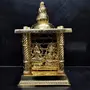 MARBLE INLAY ART AGRA - PACCHIKARI Ganesh-Laxmi Temple Made of Aluminium Metal Gold Plated. Ht. 5 inch.