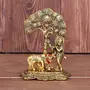 MEENAKARI ENAMEL PRODUCTS Aluminium Metal Golden Plating Krishna with Cow Standing Under Tree Showpiece