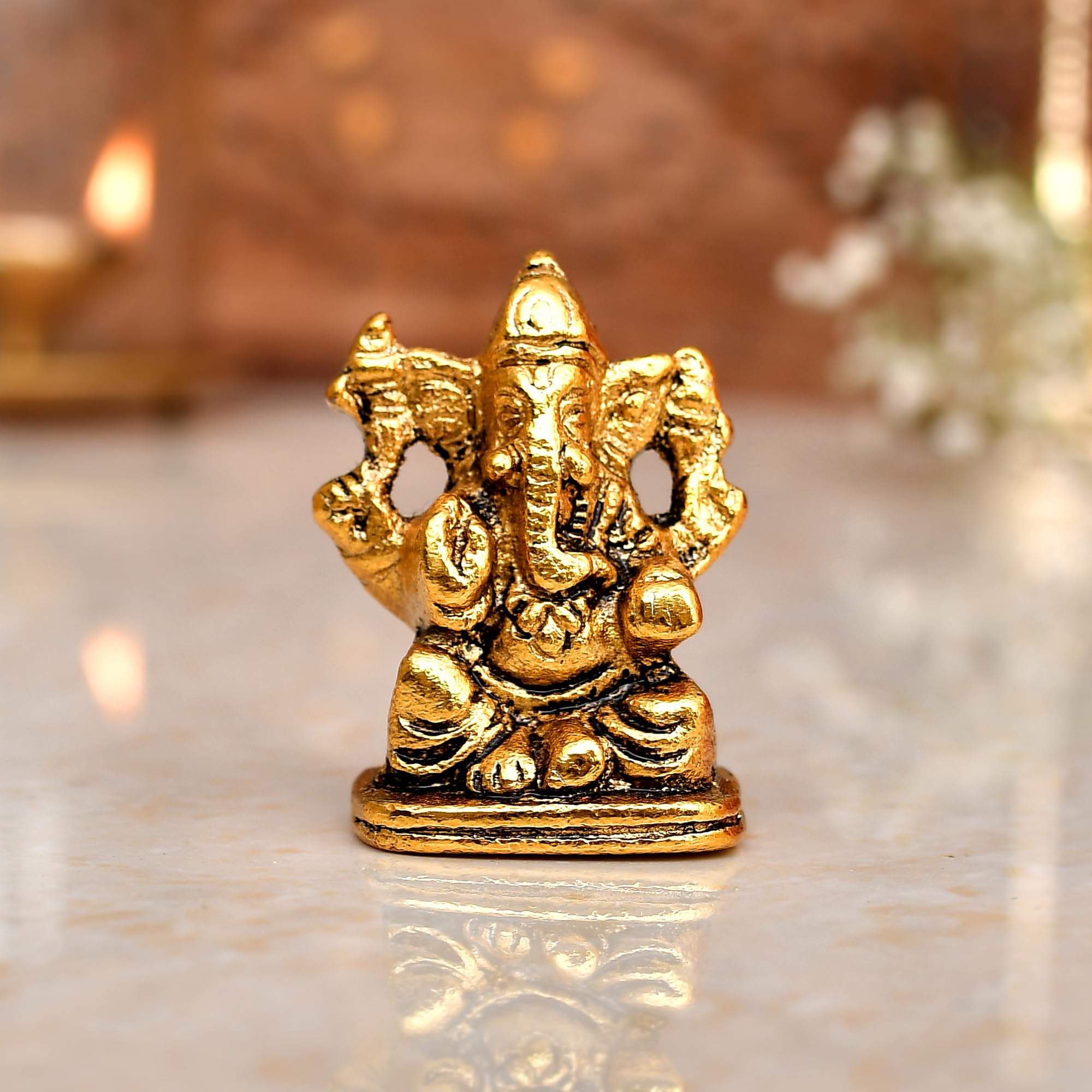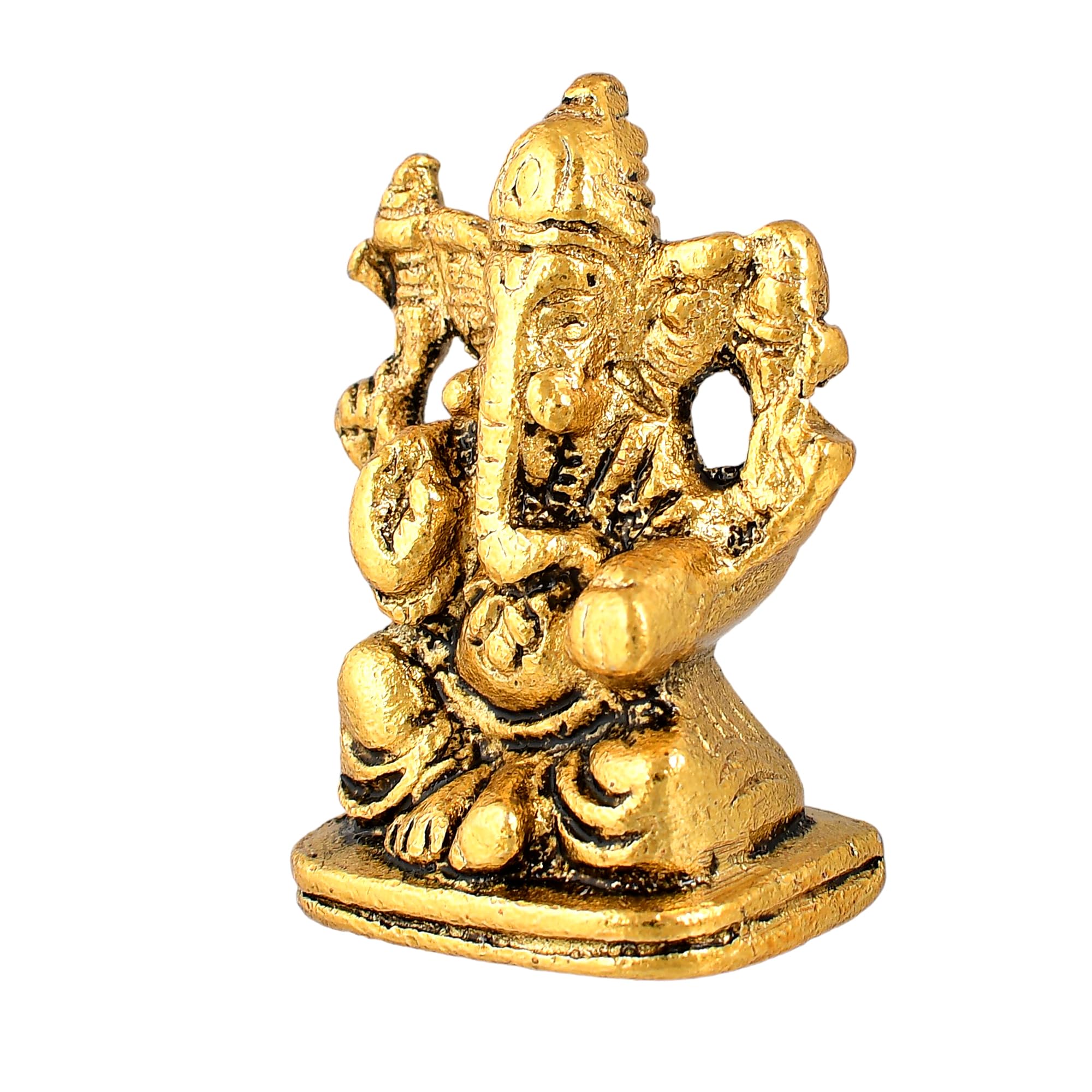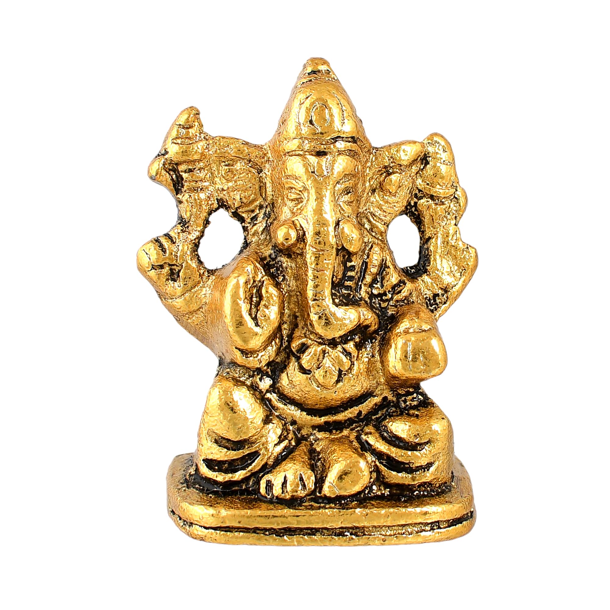 Metal Ganesha is the god of all good beginnings. He is associated with success and overcoming obstacles. He also brings happiness in our lives. This artifact by us brings to you ganesha in his most charming and endearing figures. this figurine is made of high quality metal and enamelled with golden finish to bring life to your home. This figure is brilliant example of art and the hard work done by the craftsmen is simply visible. Size: Length 3.5 CM x Width 2.2 CM x Height 4.5 CM | Weight: 40 Grams | Materiel: Metal