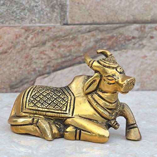 Nandi - The Vehicle of Shiva - Brass Statue- Nandi Bull Sitting