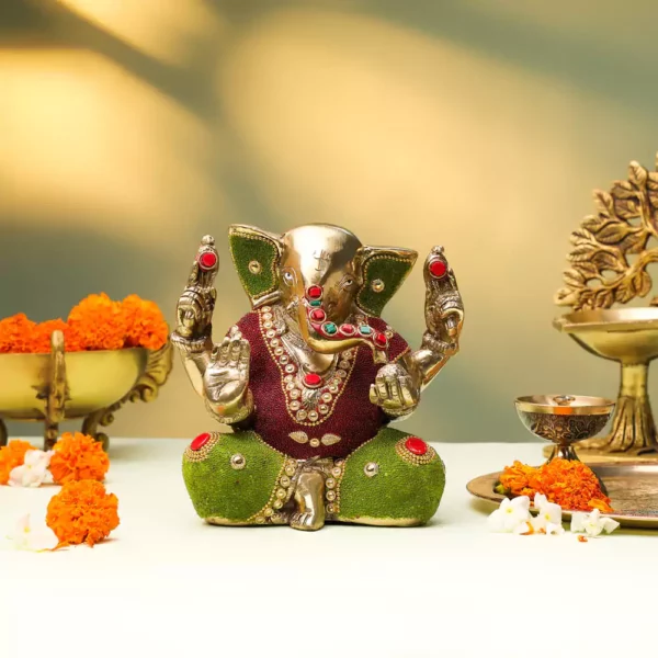 Niksa Homes Decorative Lord Ganesha Sculpture in Red & Green