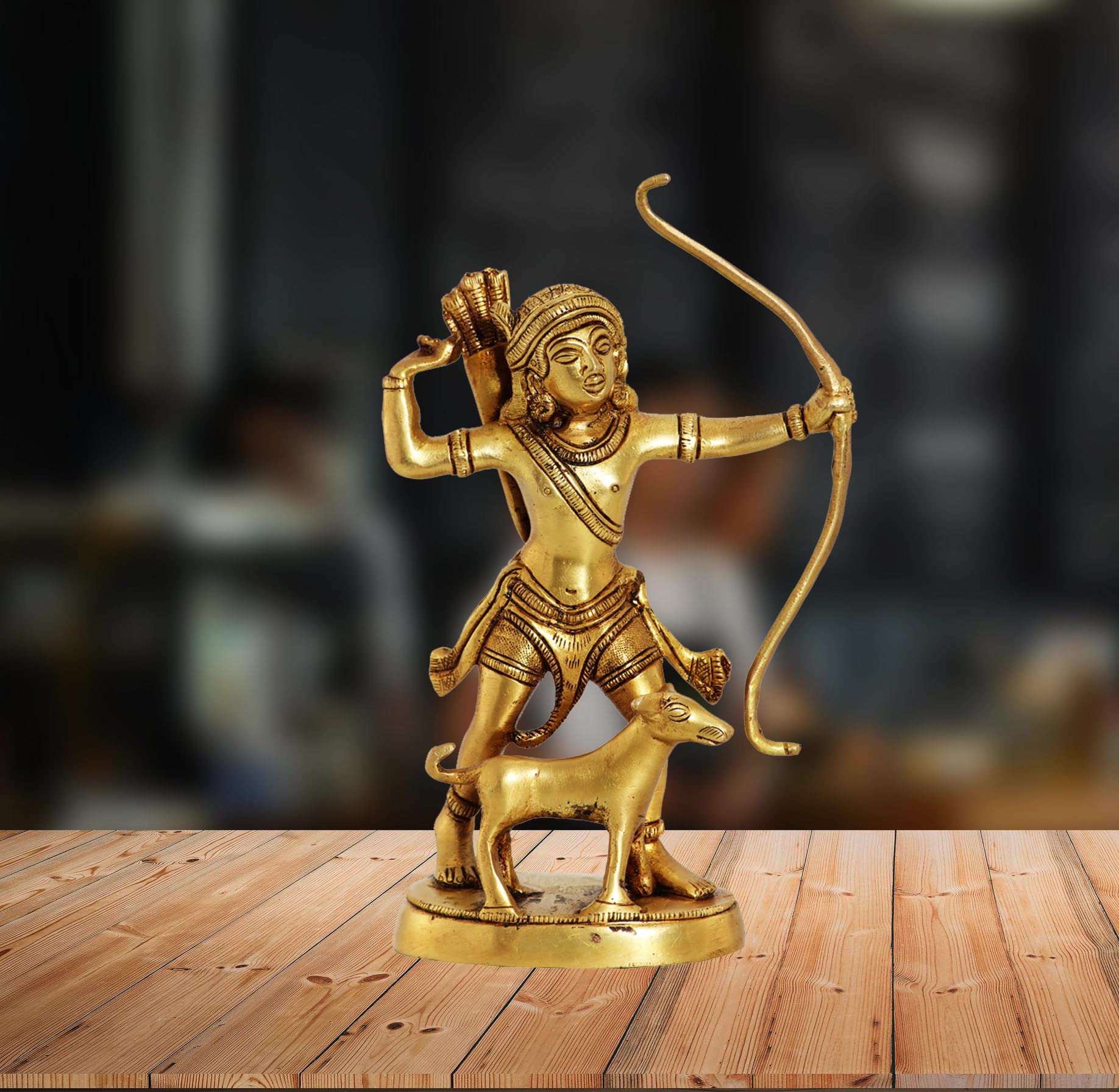HomeHomeSpiritualIdolsP.J.Handicrafts Unique Brass Idol of Kirateshwar of Kirat Lord Shiva's Avtar | Tribal Man with Bow & Arrows - Showpiece for Home Decor Yellow Size : (Height - 7.5")