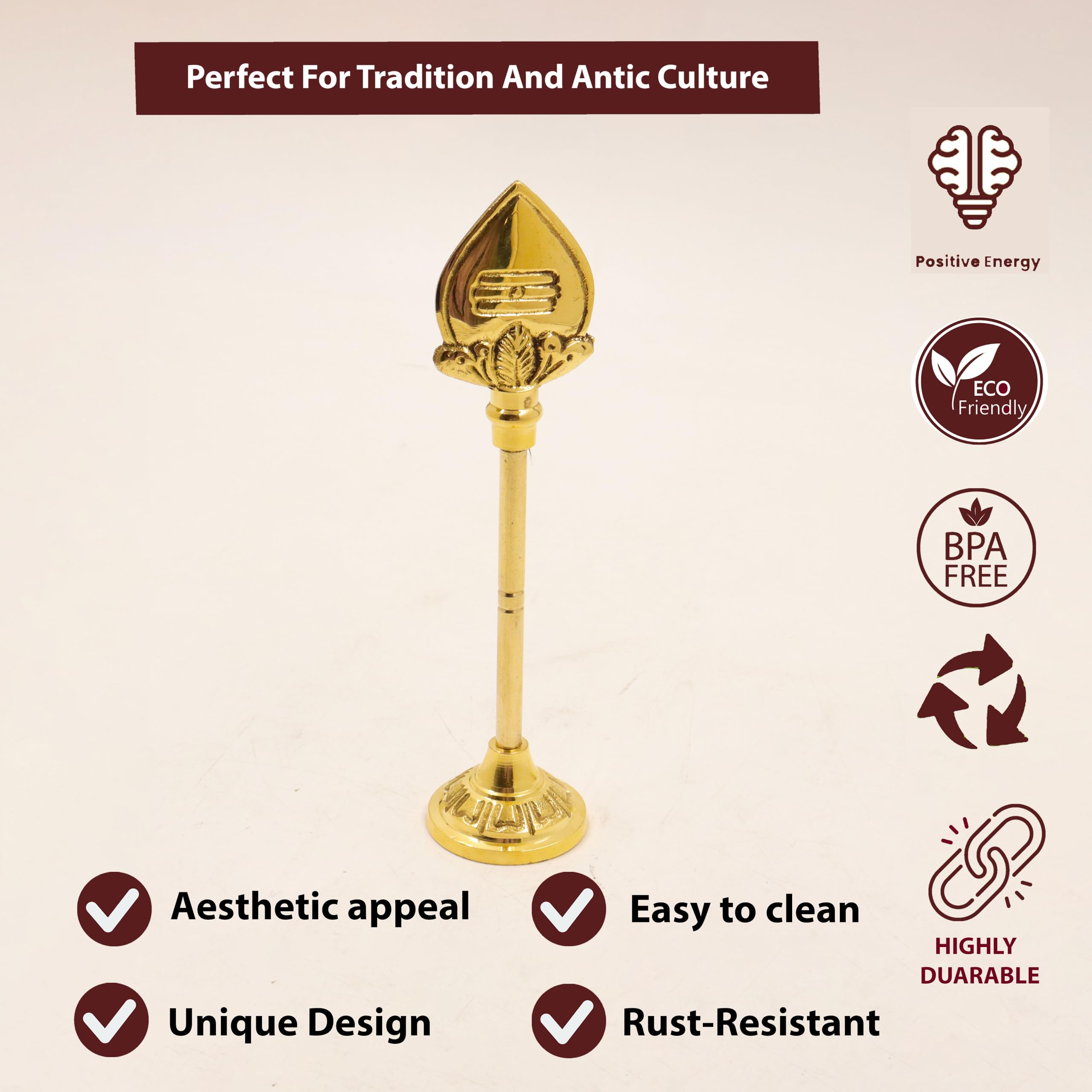Color: Gold | Material: Brass | Height: 15 Cm. It can be placed in your Puja Room as well as an emblem of good health and longevity. You can see wonderful results to enhance career luck longevity and health wealth luck family luck and education. IDEAL GIFT: Perfect gift for any occasions that will surely make a memorable impression as a gift it is ideal for any occasion: House warming Festive occasion or holiday gift. This is made up of pure brass that makes it more beautiful and durable. This camphor stand can be use both in houses and offices as well as Mandir. Care Instruction - Don't wash use dry cotton cloth to remove dirt