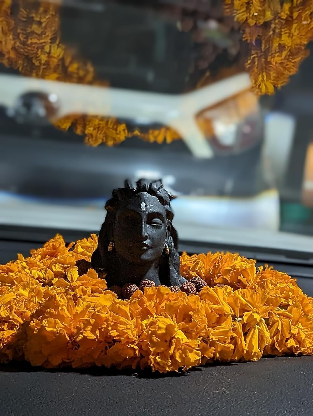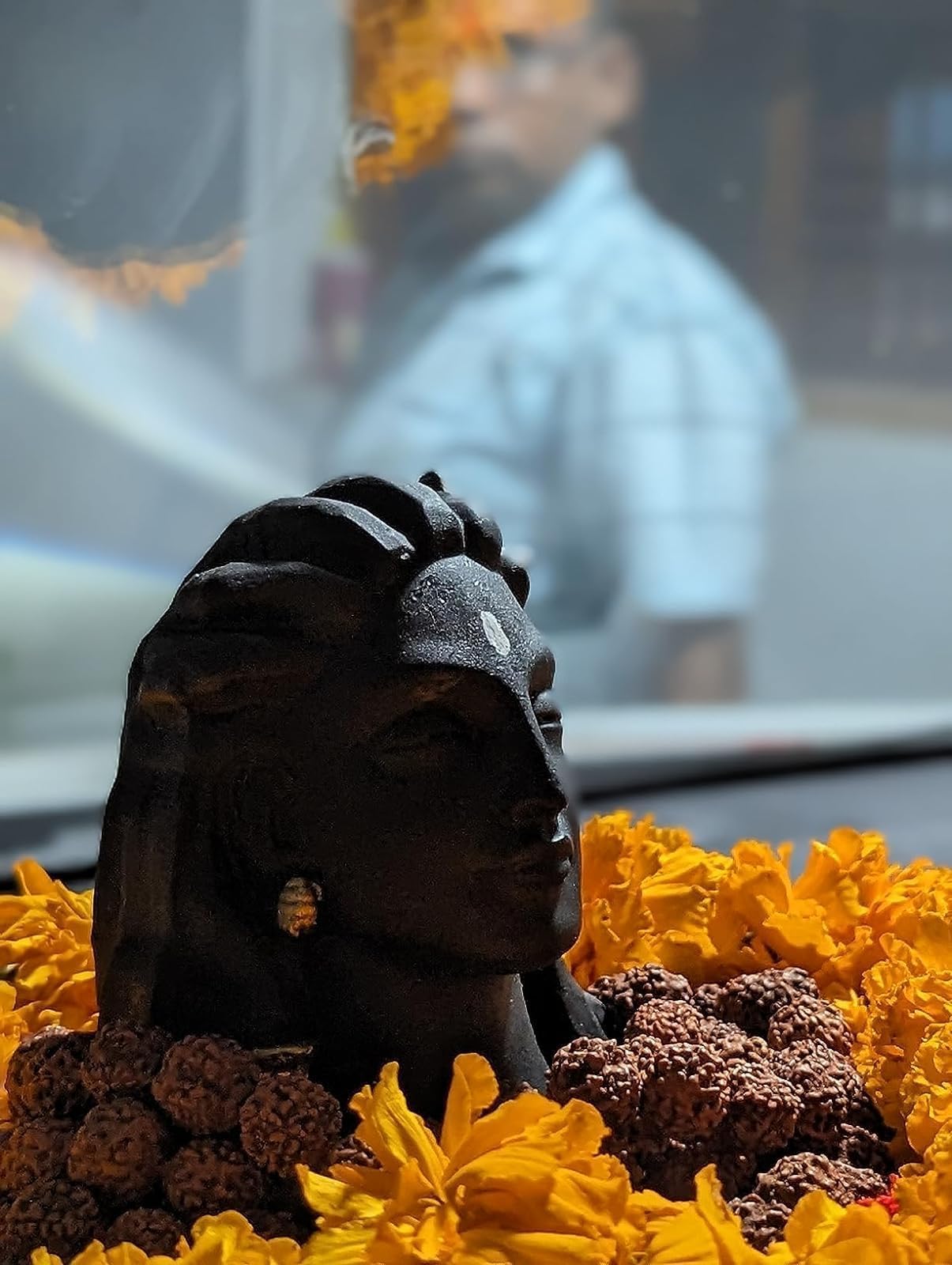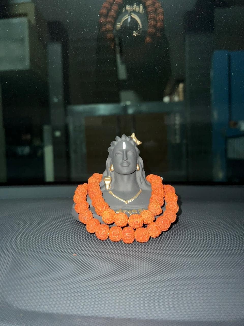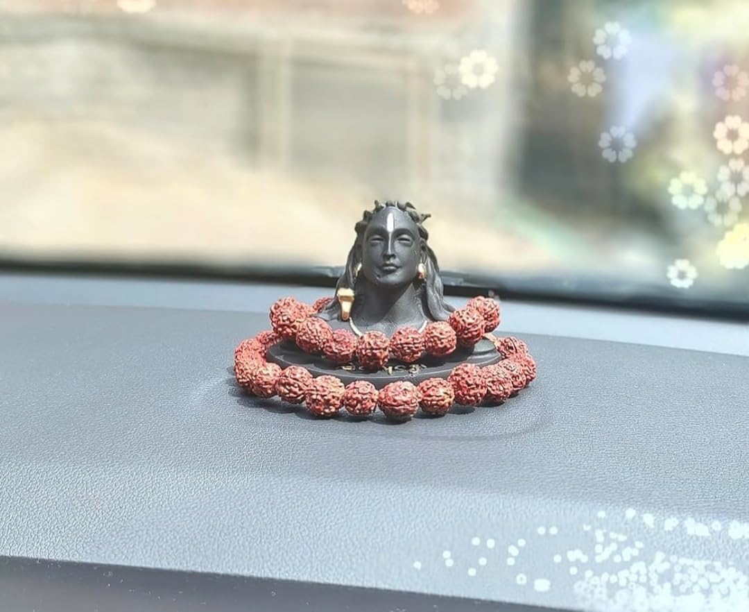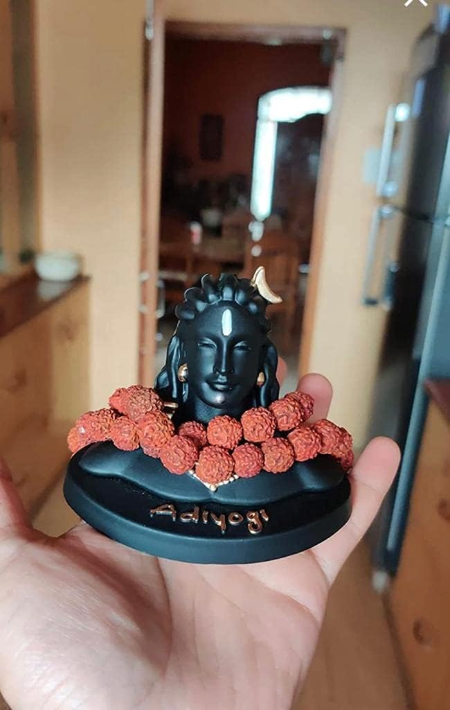 Package Contents: 1 Black Adiyogi Mahadeva Shankara Statue 1 Rudraksha Mala & Double-Sided Tape. Care: Clean it with a dry cotton cloth.