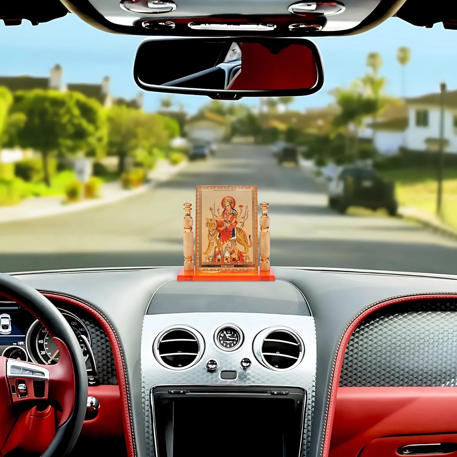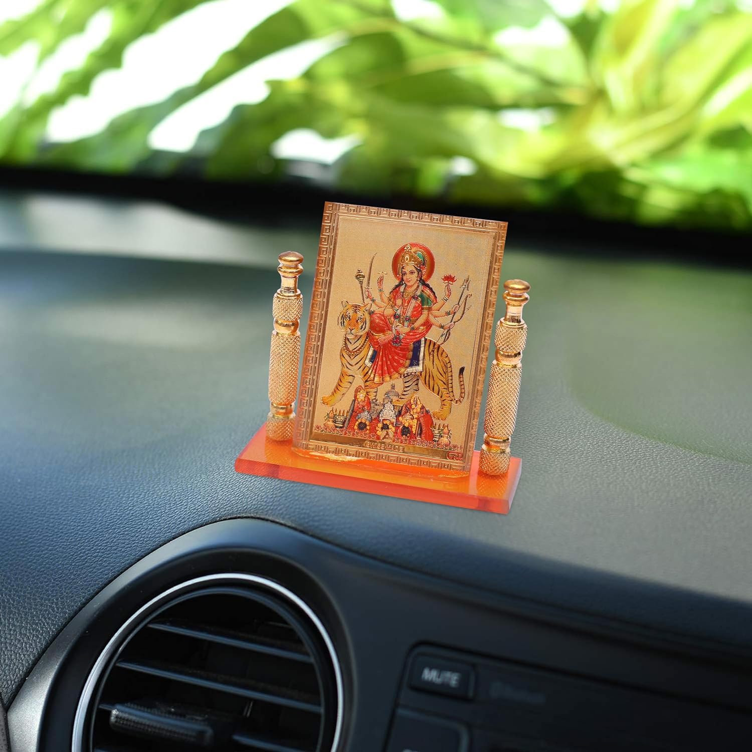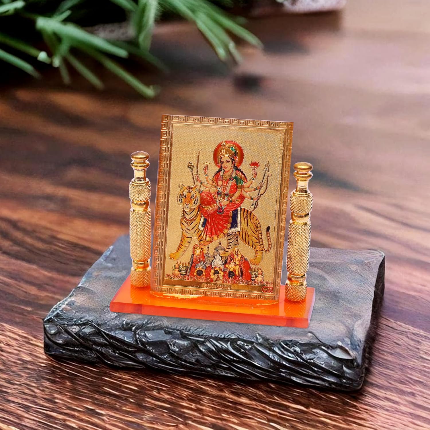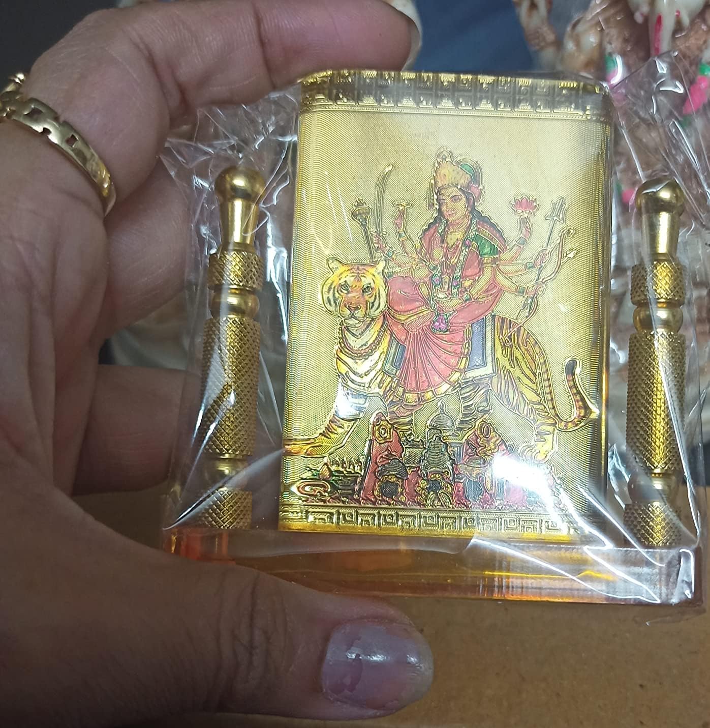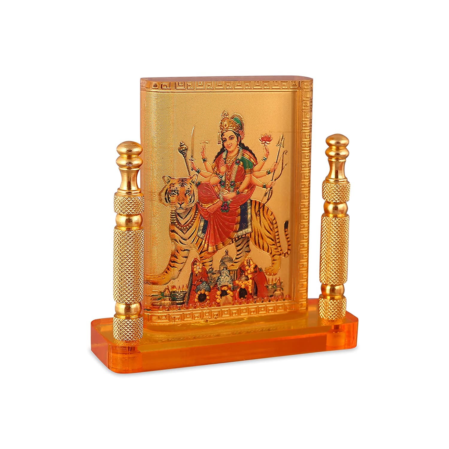 HomeHomeSpiritualIdolsRhymestore Hindu Goddess Maa Bhavani Mata Durga Vaishano Devi Sheronwali Acrylic Frame For Home Office & Car Temple Gold Tabletop - 3.15X1.18 Inch