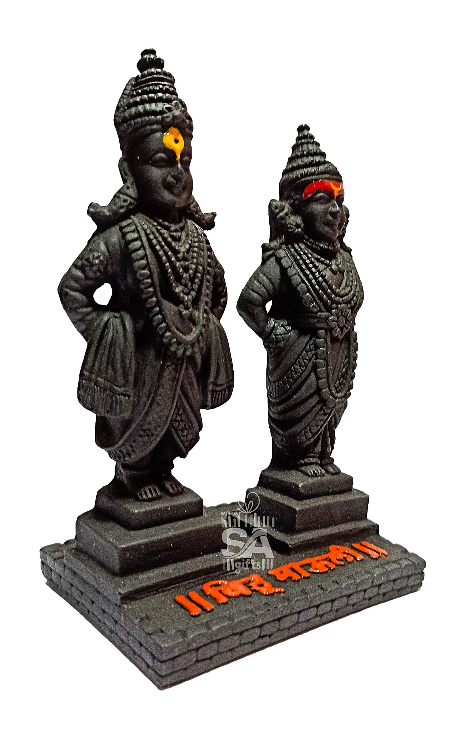 HomeHomeSpiritualIdolsS A GIFTS Sai Amrut Vitthal Rukmani Stand | Vitthal Rukmini Idol for Home & Offices Decorative Showpiece (5 Inch Black) Polyresin