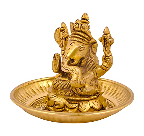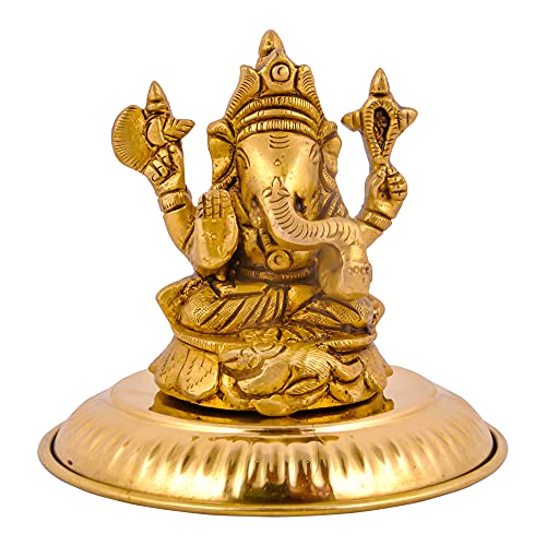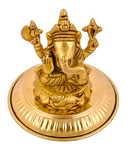 • Heighly Durable - Pure Brass Lord Ganesha Statue | Murti - Dimenssion = > Murti ( Height x Width ) - 8.4 cm x 6.8 cm Weight - 410 Gram Approx Murti | Base Plate = Diameter - 10.8 cm Weight - 55 Gram.