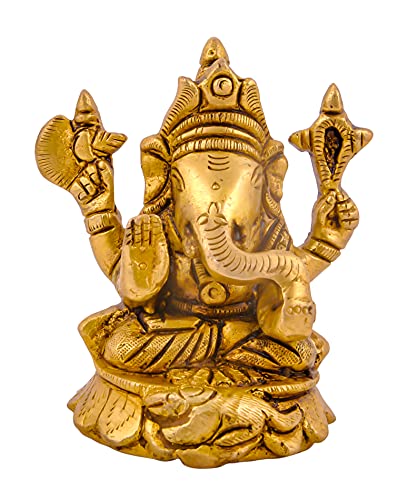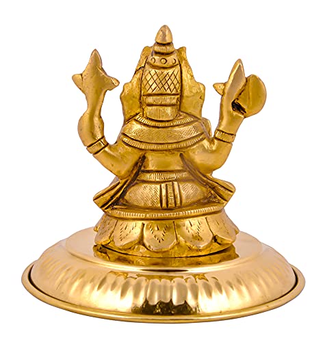 Shiv Shakti Arts Pure Brass Lord Ganesha Ganpati Ji Idol Statue - Siddhi Vinayak Murti with Sitting Base (Gold Ganesh ji for Home Mandir)