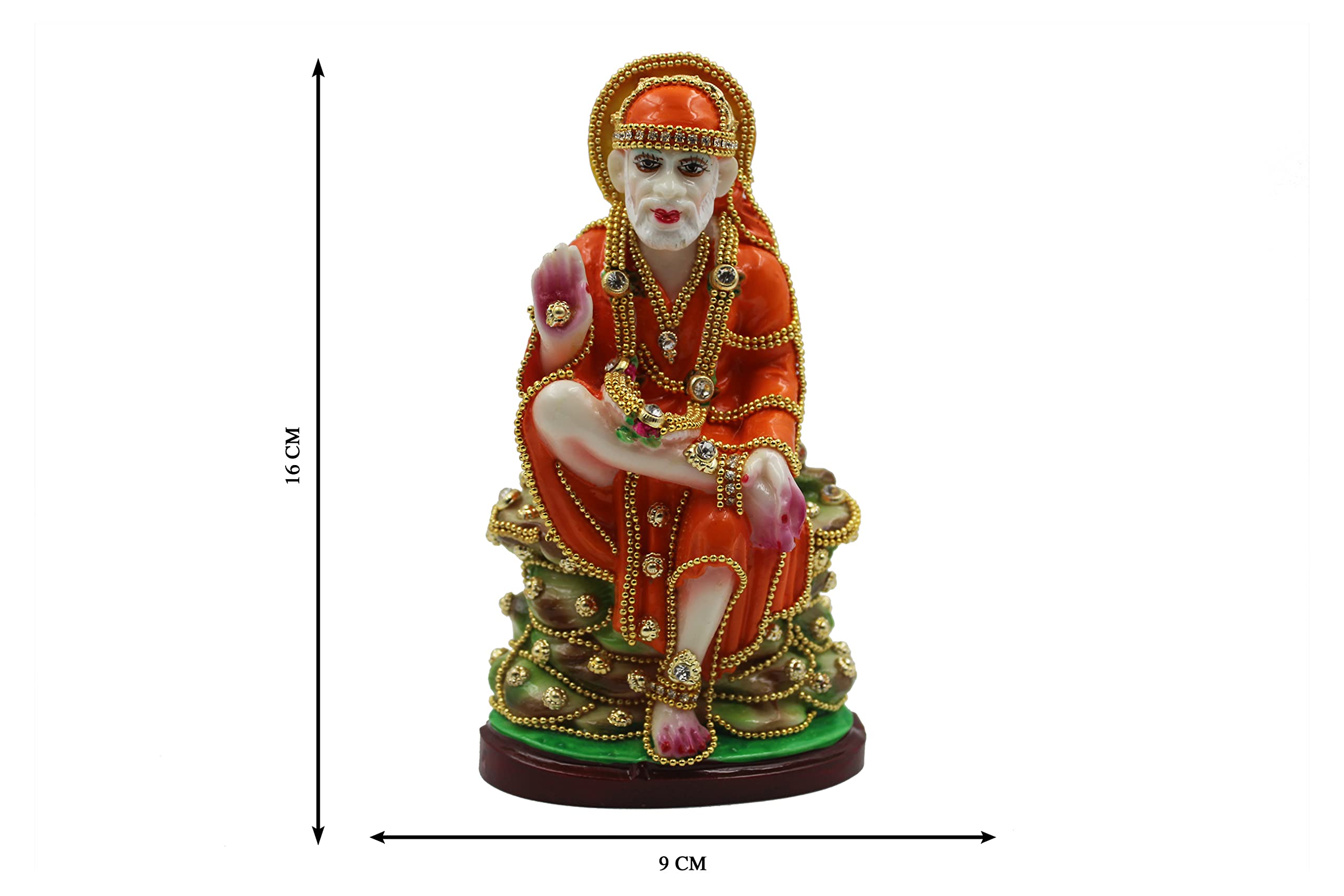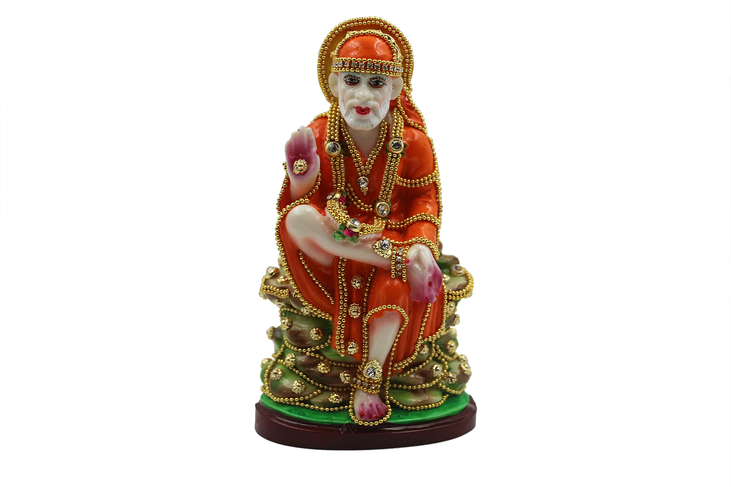 Shirdi Shri Sai Baba taught a moral code of love forgiveness helping others and devotion to God " Marble Look Lord Sai Baba Idol God Shri Sai Nath Statue Shirdi Sai Decorative Spiritual Puja Vastu Showpiece Figurine - Pooja Gift item & Murti for Mandir / Temple / Home Decor / Office.USE : This Decorative Murti can be used as Pooja Mandir Interior Decoration Accessories / Table Decor Items or