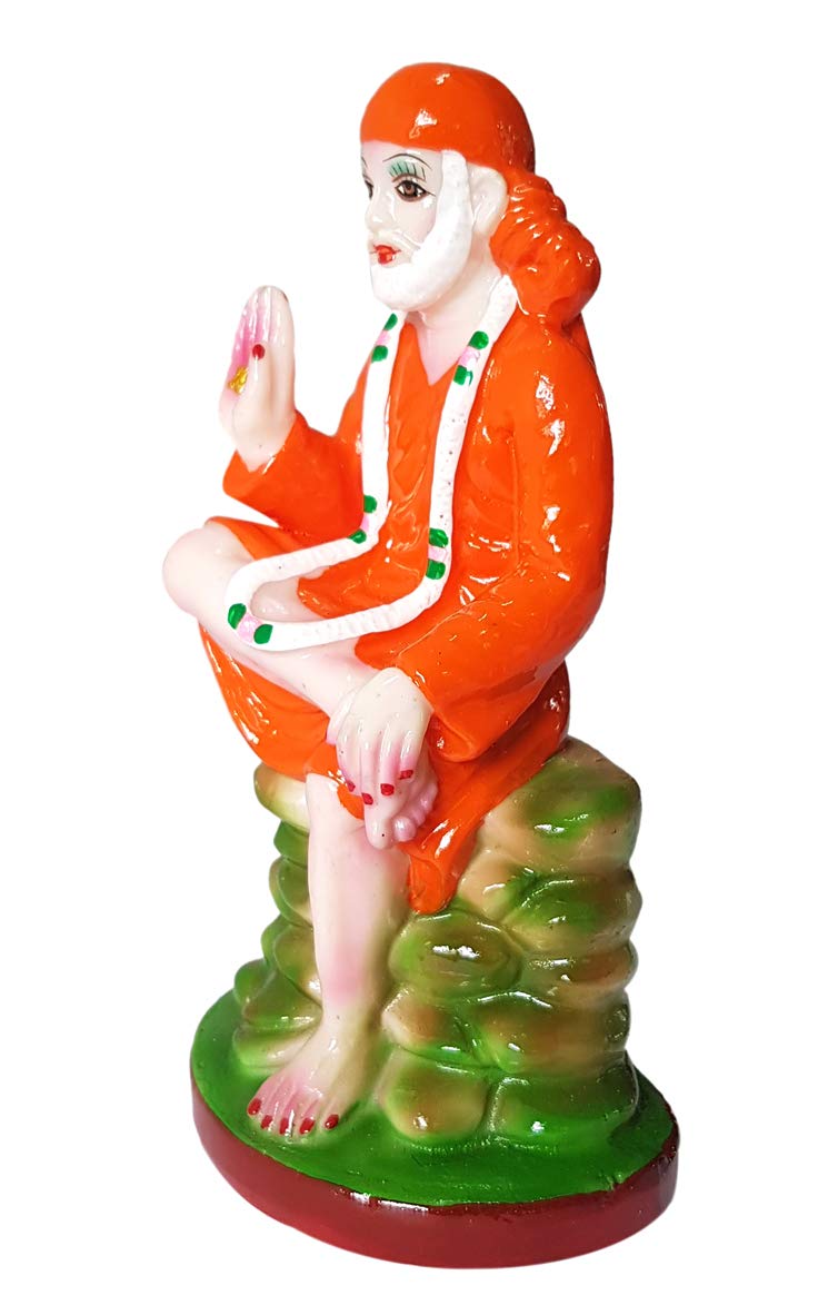 Shirdi Shri Sai Baba taught a moral code of love forgiveness helping others and devotion to God " Marble Look Lord Sai Baba Idol God Shri Sai Nath Statue Shirdi Sai Decorative Spiritual Puja Vastu Showpiece Figurine - Pooja Gift item & Murti for Mandir / Temple / Home Decor / Office.USE : This Decorative Murti can be used as Pooja Mandir Interior Decoration Accessories / Table Decor Items or