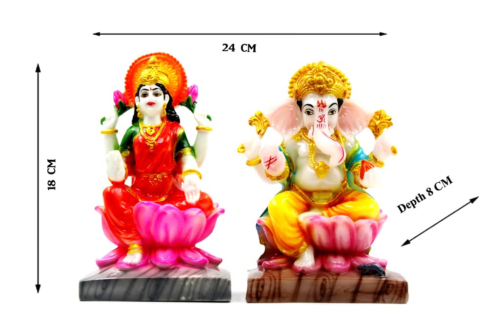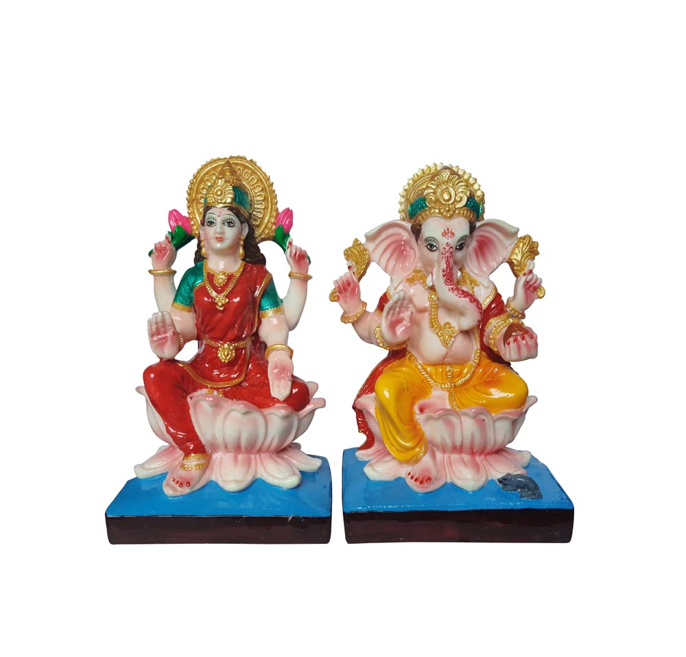 It is a custom to worship Goddess Lakshmi & Lord Ganesha together. Lakshmi is the Goddess of Wealth & prosperity while Ganesha is considered the God of intelligence. These two deities are worshipped together to welcome wealth along with intelligence. This Polyresin idol is hand crafted and painted with gold work and is suitable for worshipping as well as home decoration.