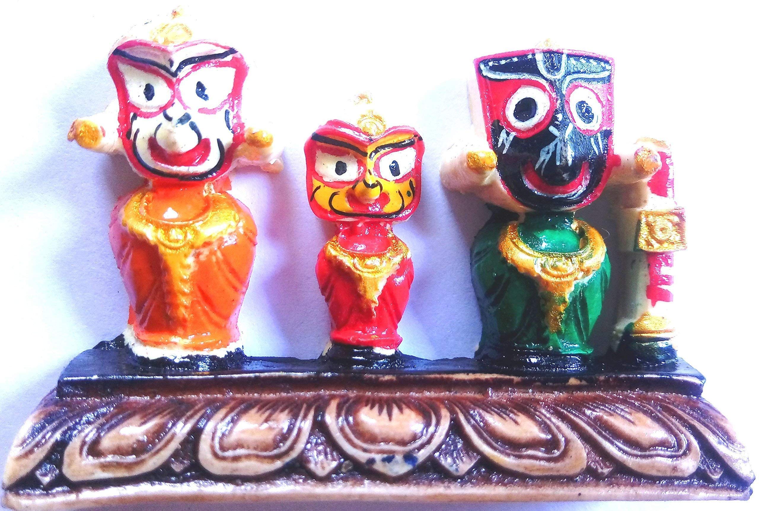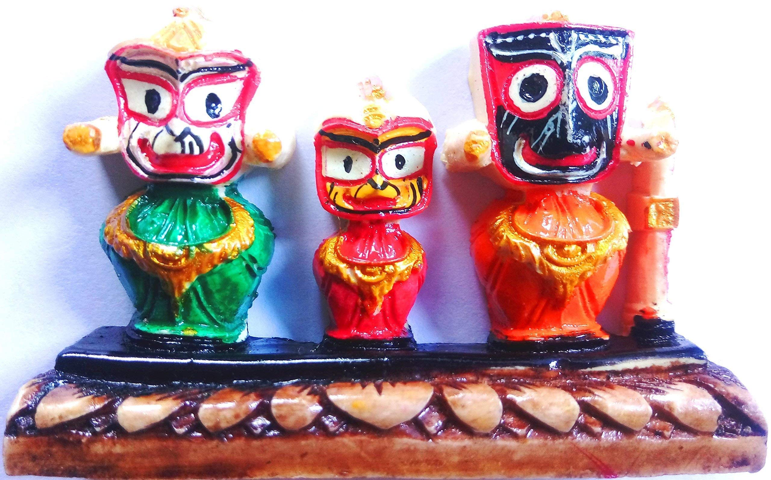 Jagannath No 1 Stand has Jagannath Baladeva and Subhadra with Sudarshan and it is made of Marble Dust Size : 1.5 x 2.5 x 0.50 inches. Lord Jagannath Baladeva Subhadra Statue / Murty No 1 Stand Marble Dust - Car Dashboard ( Small Size 6.5 x 4 x 1.5 Cms )