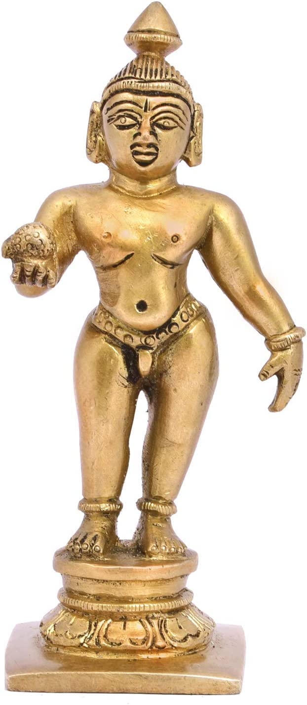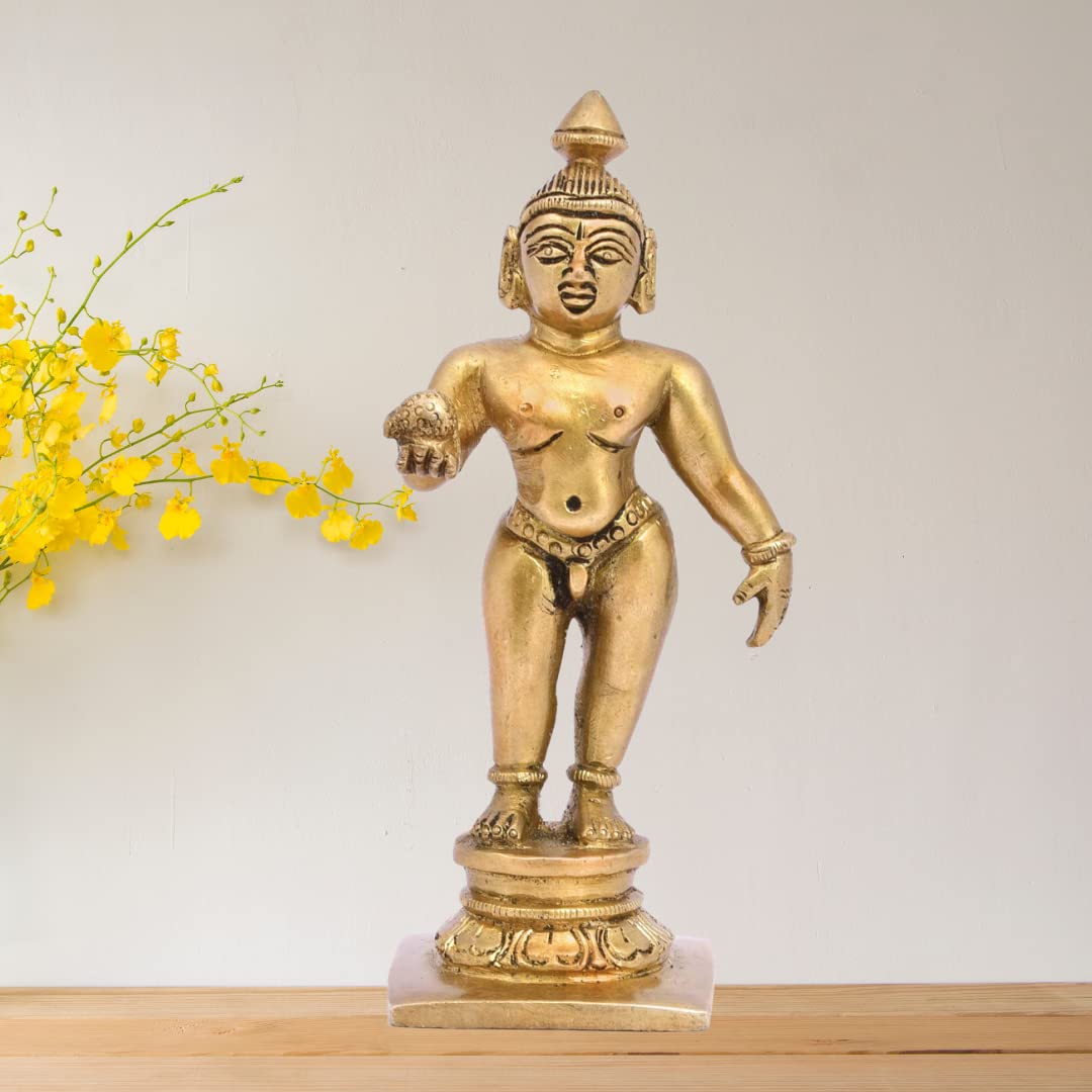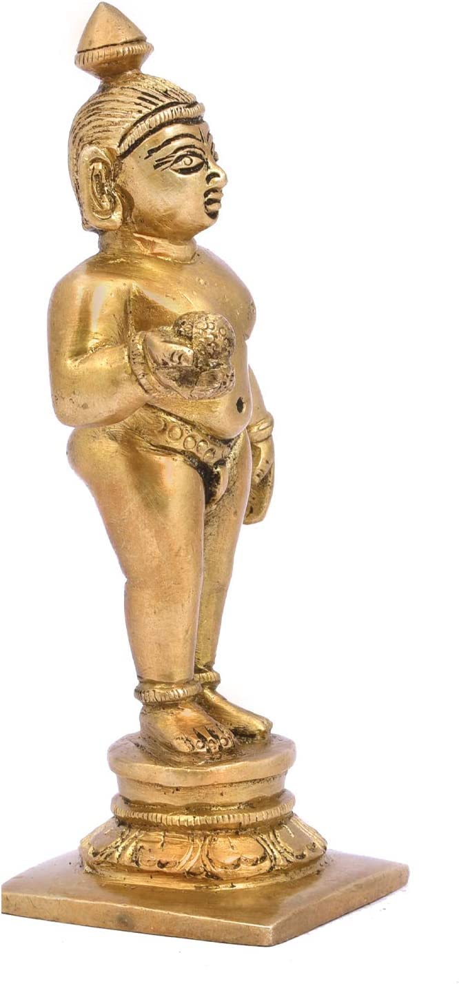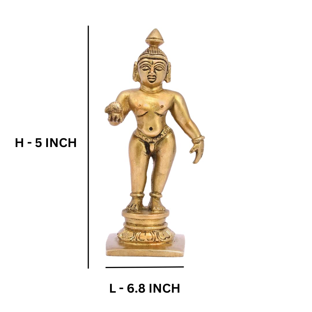 The Advitya Brass Laddu Bal Gopal Standing Krishna Laddoo Murti for Puja|Banke Bihari Idol for Home Temple Mandir Devkin Thakurji Statue Sculpture (Height 5 inch Width 2.5 inch Weight 407 gm)