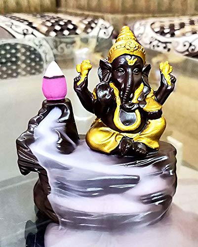 TRUESTAR Fabric Lord Ganesha Smoke Backflow Cone Incense Holder Showpiece 4 x 5 Multicolour 10 Smoke Backflow Scented Cone Incenses