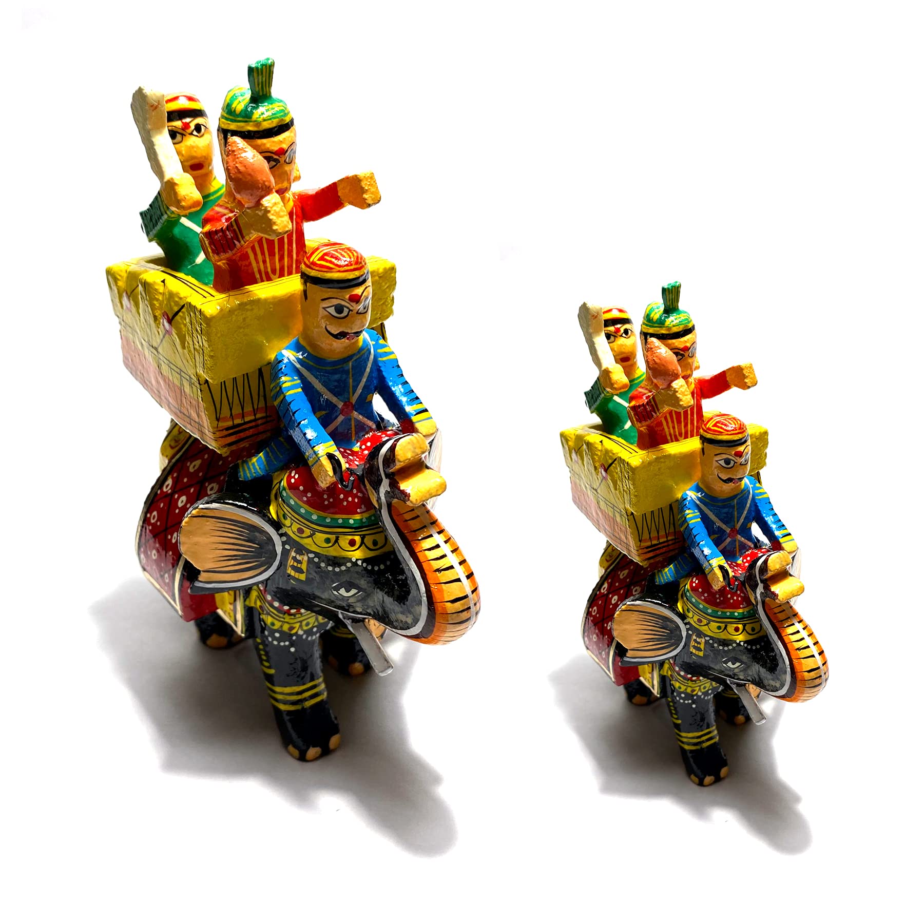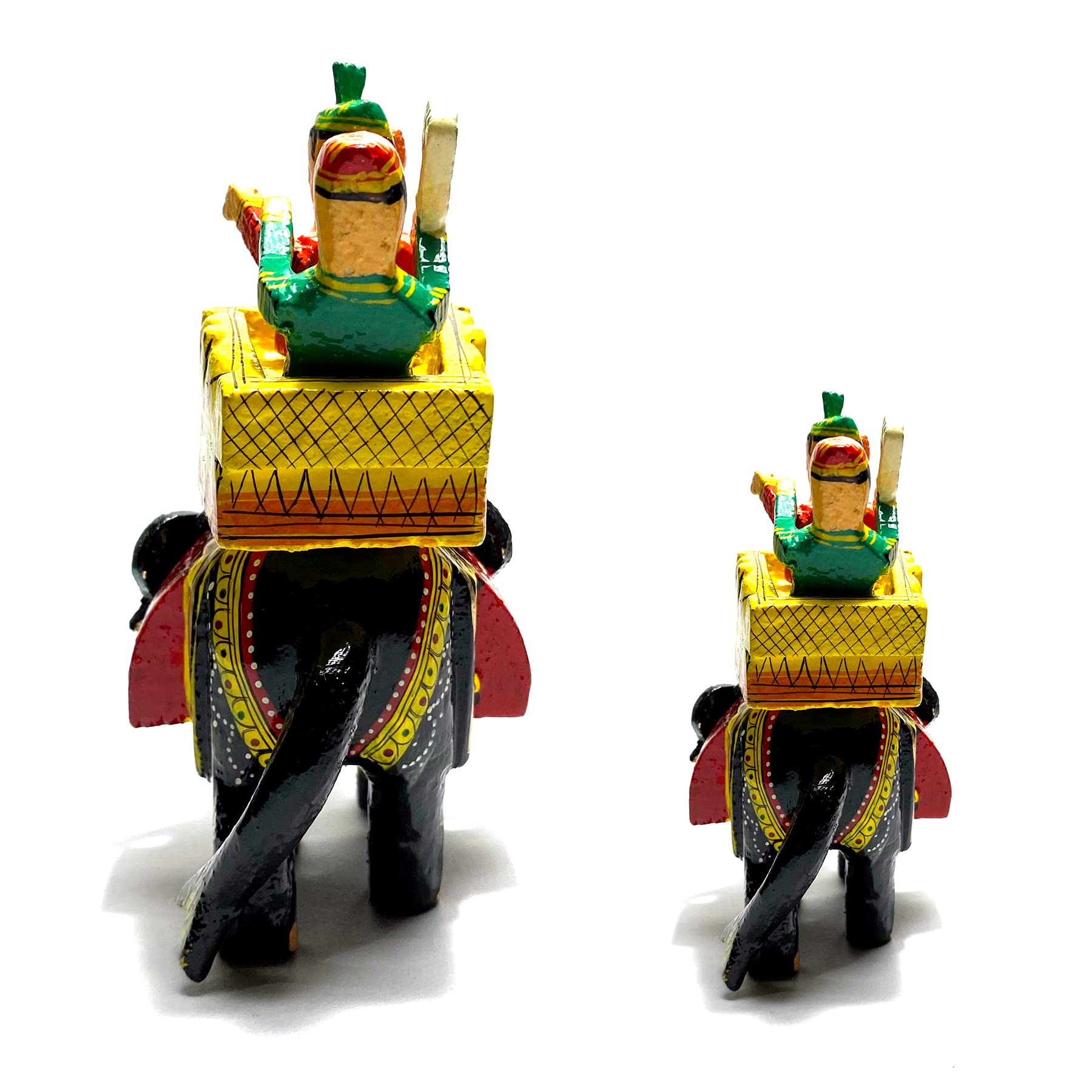 VARANASI WOODEN TOYS Lacquer Wooden Elephant Showpiece Set Or Lakdi Ka Maharaja Rajdhani Haathi Set for Home Decor Collectible Idol from Varanasi Karigar Or Artisian (Big Size 13 x 18 Cm Small Size 10 x 13 Cm)