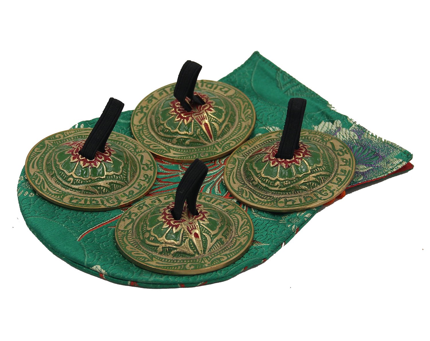 TIBETAN RITUAL CURTAIN Belly Dancing OM Namah Pro Finger Zills or Cymbals (Green)