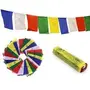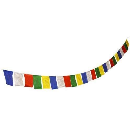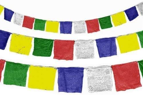 WIND HORSE FLAG The five bright colors represent the basic elements: Space air fire water and earth. When the wind blows it emits positive spiritual vibrations. TIBETAN BUDDHIST This prayer flag with look captivating hung outside your home on trees or mountain tops showing supports for Tibetan people. BEAUTIFUL GIFT Clear decals are printed on a stunning polyester material. It promotes peace compassion strength and wisdom. These flags would also look attractive in your home or on the yard. SPECIFICATIONS The string is 16 feet long with 25 clear block prints on high quality polyester. Each flag measures 8 x 10 inches. WARRANTY We stand behind our products! sold and fulfilled by Divine Buddha handicrafts.