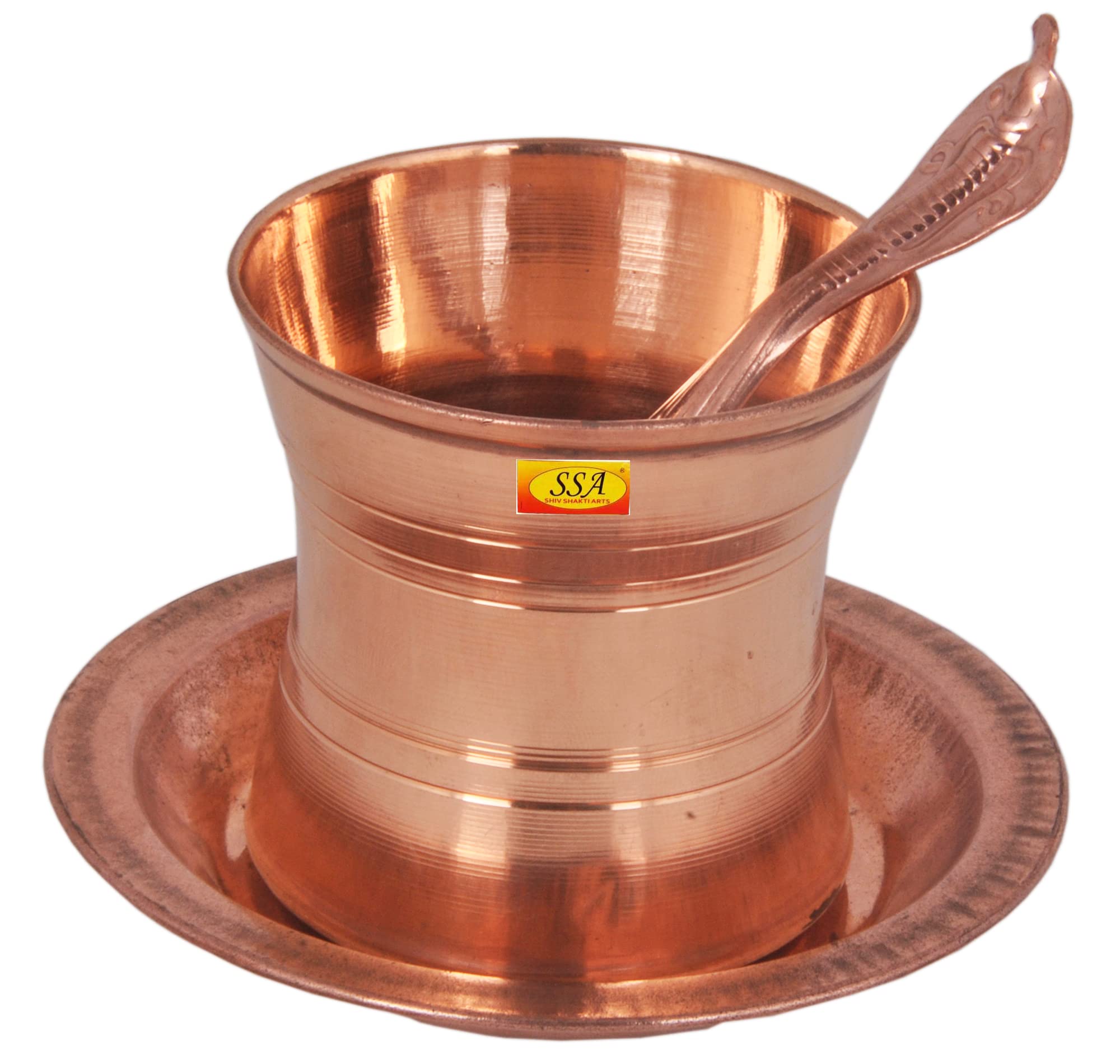 SHIV SHAKTI ARTS Relish Indian cuisine in Indian style! This is a set of centerpiece serve-ware for Indian food. Serve Indian dishes to your friends and family in this unique and ethnic looking centerpiece serve ware. With this serving utensil set your Indian style dining experience goes several notches up. The material used is food grade. Hammered Copper is used only on the outside of the utensil and does not come in contact with the food. Only the high quality food grade stainless steel is in contact with the food. Two layers of metal with air cushion ensure that the food stays warm much longer. Serving dinner in this dinnerware handi would be unforgettable experience.