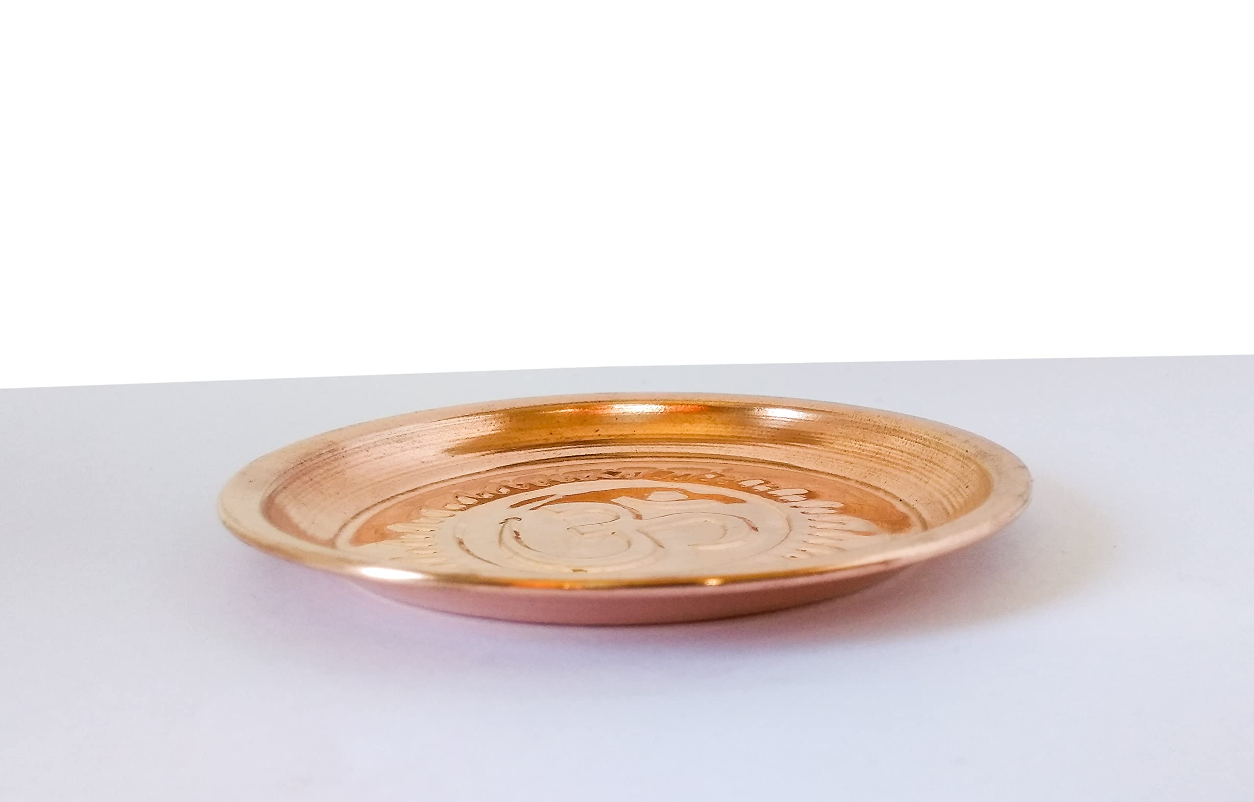 This small copper plate has a Handcrafted Diameter of 5 Inches. This is a delicate lightweight plate. Unadulterated Copperplate. This Beautiful Copper Plate can be utilized for serving Diya plates prasadam plates or small idol plates in the home temple pooja room and is exceptionally engaging and eye-catching. Simple to use and clean. Ideal for Diya plate god idol plate bhog Prasadam Prashad plate/thali/bowl/ Patra for pooja home mandir aarti harathi puja item pooja Multipurpose plate.