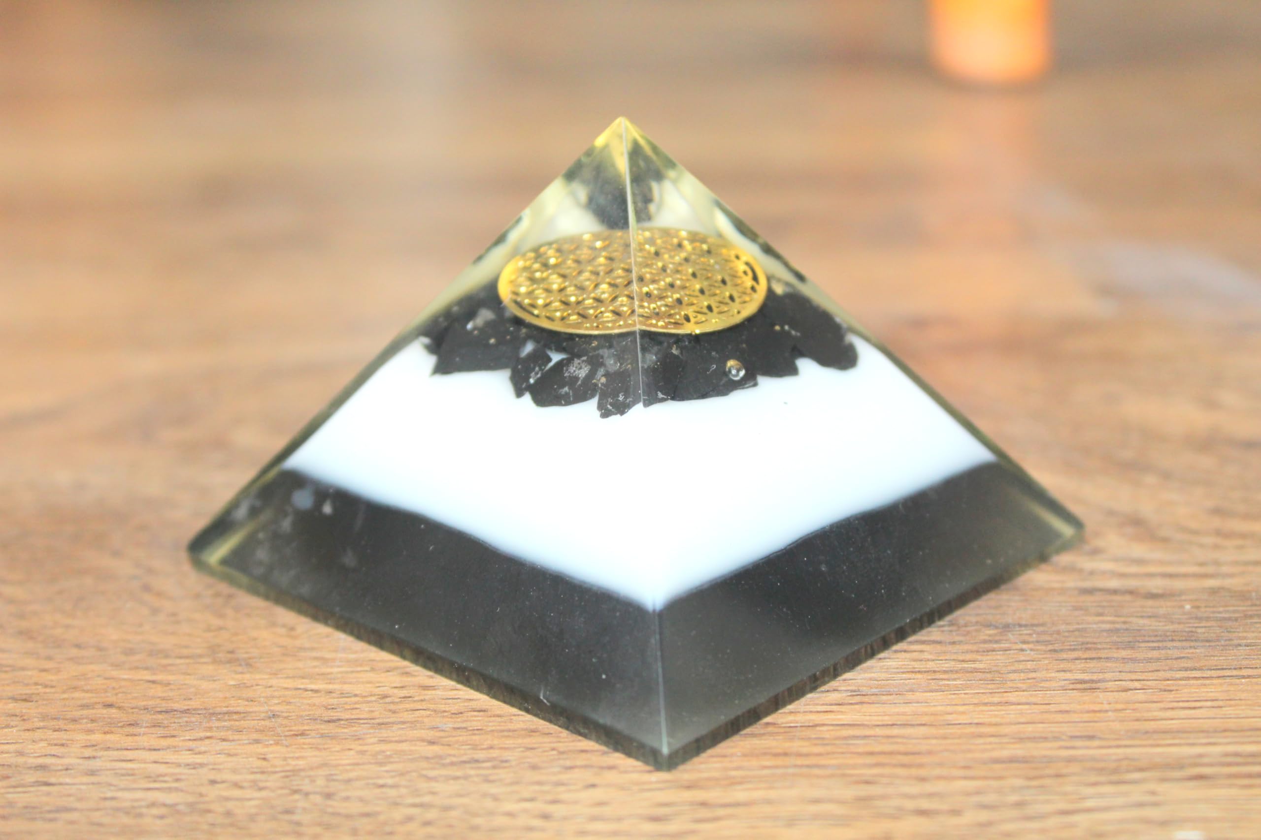 Brand: JET INTERNATIONALProduct Name: JET TOURMALINE + SHUNGITE METAL FOL ORGONE PYRAMID APPROX 3.5- 4 INCH . Purpose: When our chakras are blocked or not in balance the free flow of energy is impeded leading to physical emotional mental or spiritual dis-ease. Crystals help us unblock and activate them. .Description: Best for Healing Chakra Balancing Positive Energy Meditation Sound Sleep Gift and many more applications. Gives great sense of Spiritual Awakening Mental Peace Psychic Horizon Magical Divine They can be used in many different methods of healing. They can be used to heal the entire body or aura or they can be used on a specific area of the body or on a particular chakra. Removes all bad energy evil forces negativity wrong choice. Best suited for Health Wealth Progress Prosperity Family Bonding Long Lasting Relationship. Stress Relief Crystal Therapy Good Luck Fortune Self Esteem. To program a crystal for specific use or with specific energies sit quietly away from distractions or strong electrical devices and external energies then hold the crystal in front of you clear your mind and focus on the stone. Give the crystal a cleanse with white light as explained above. Concentrate on the specific energy that you wish to program the crystal with and 'transmit' the energies and thoughts from your mind directly to the stone. BenefitsEnhances; awareness visualization intuition psychic abilities.Enhances happier moods very noticeable.Clear's negative entitiesHelps reach higher vibration of energiesHelps cleanse the chakra's.Disclaimer Jet International Brand & Products Copyrighted. Any Copying Prohibited. Any violation in the same regards may lead to account suspension on Amazon IMAGE IS JUST A REFERENCE