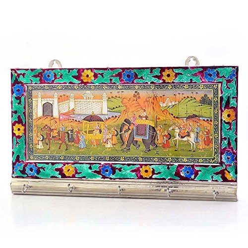 This handcrafted Keychain Holder is made of white metal and adorned with meenakari royal procession painting. The gift piece has been prepared by the creative artisans of Jaipur.