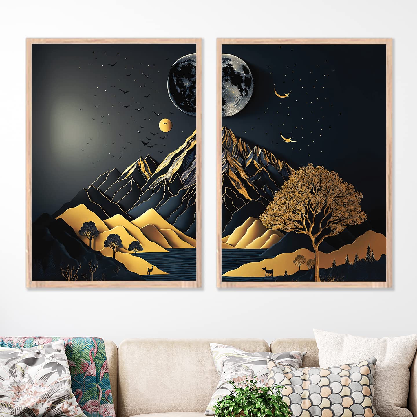 NoWorries Wall paintings and hangings, Wall paintings for home decor and office/illustration art set of 2 big framed poster for wall decoration (Set of 2) (illustration design) (13x19 inch)