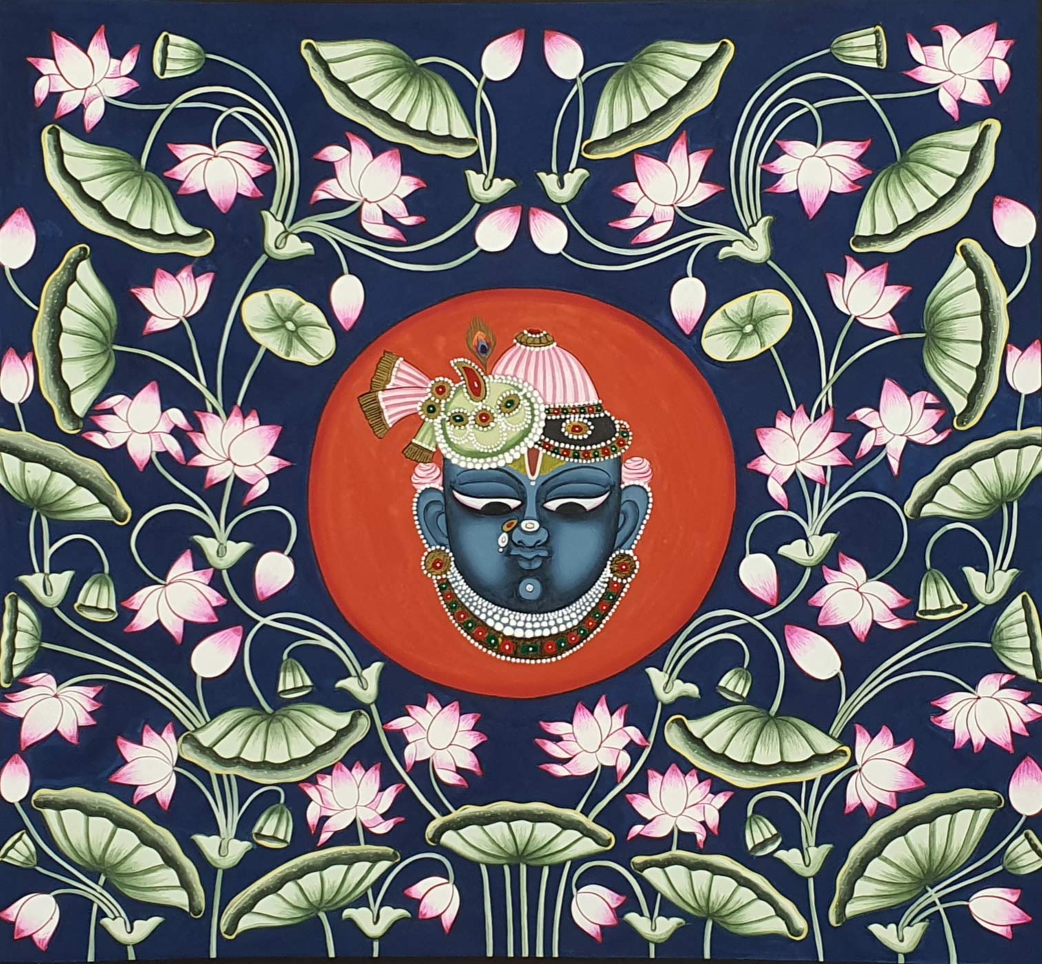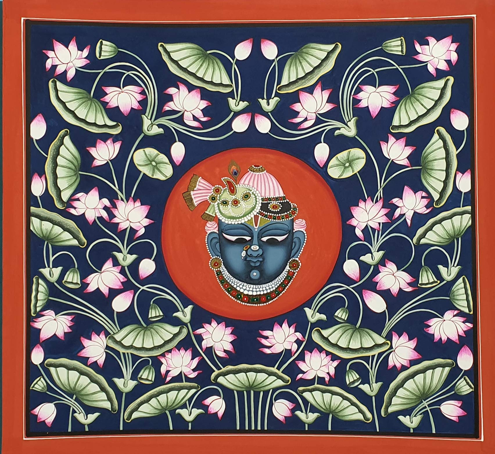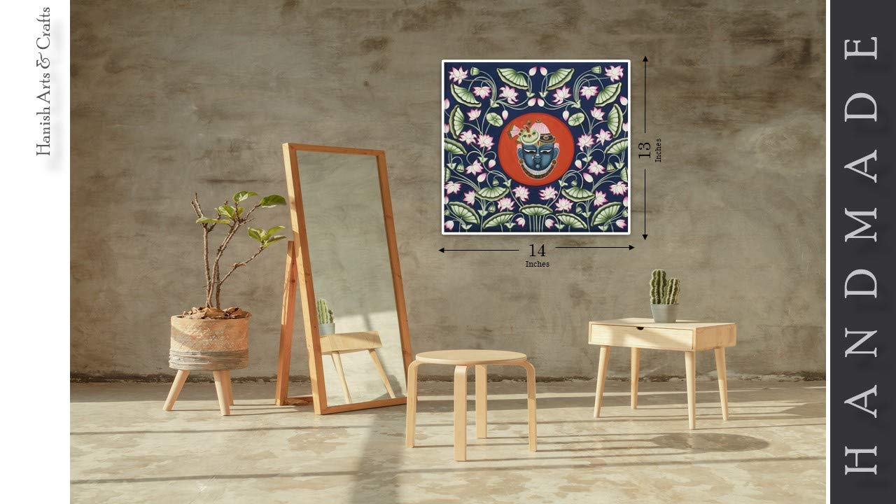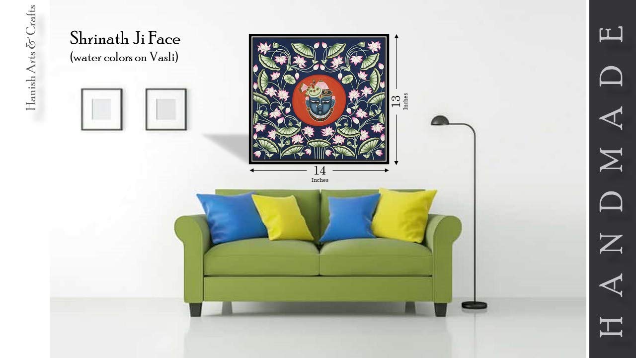 A beautiful painting involves the action or skill of using paint in the right manner; hence the end product will be a picture that can speak a thousand words they say. Arts have been in trend for quite some time now. Pichwai (pichvai) is a style of painting that originated over 400 years ago in the town of Nathdwara near Udaipur in Rajasthan India. Intricate and visually stunning pichwai paintings made on cloth depict tales from Lord Krishna's life. Pichwai (pichvai) is a style of painting that originated over 400 years ago in the town of Nathdwara near Udaipur in Rajasthan India. ... Lord Krishna is often depicted as Shrinathji in Pichwais which is the deity manifest as a seven-year-old child. You can gift this to a family or a friend. The painting has various forms of certain figures on it as seen in the image. You can add a good set of lights to the place where the painting is and the decor will give a different feel and look to the place. Quality and durability the painting has a matte finish.
