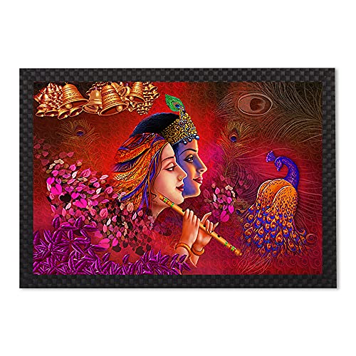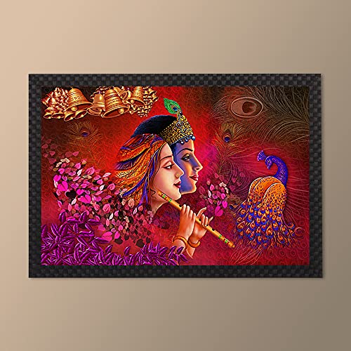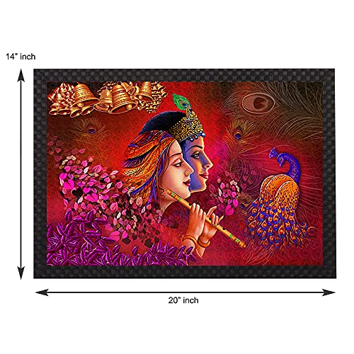 Saumic Craft Radha Krishna framed Religious Paintings for wall Home decoration (14 X 20 INCHES )Mult