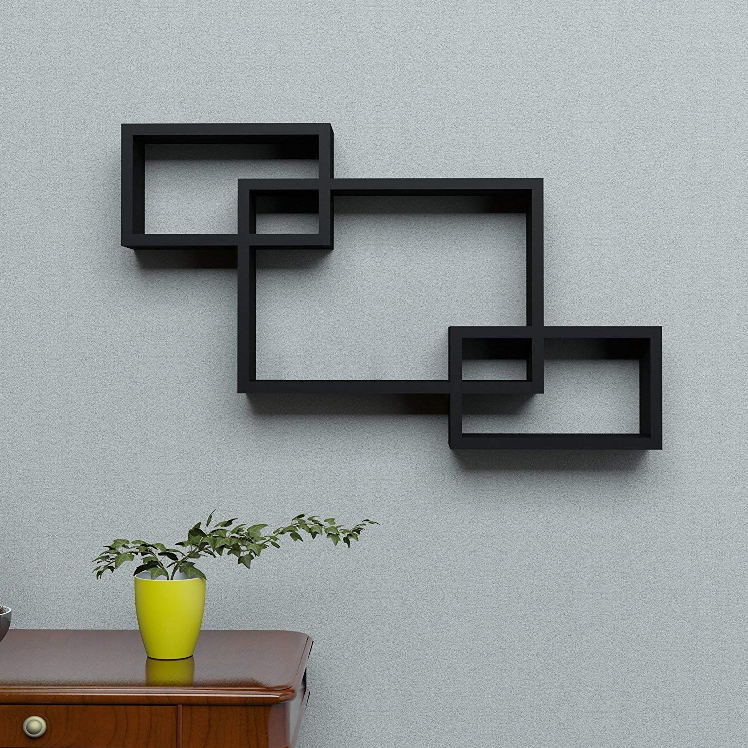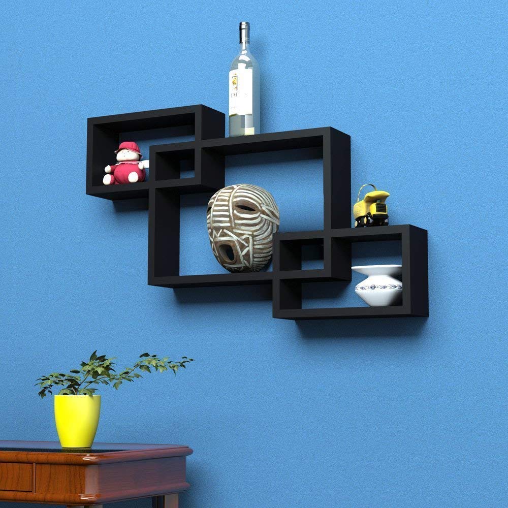 HomeHomeWall AccentsShelvesSAHARANPUR HANDICRAFTS MDF Intersecting Wall Mounted Shelf Rack Storage Unit for Home Decor Living Drawing Kids Room Set of 3 (Black)