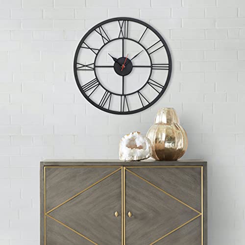Material : Metal | Diameter : 40 cm | Color : Black | Design : Transparent Roman Number Clock | Type : Analog Wall mounted Watch | Frame : Solid Metal with Rust free Coating | Shape : Circle | Size : Large / Big | Machine : Quartz | Model : Transparent |
