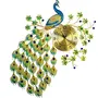 RONTENO Metal 3D Peacock Big Size Wall Clock for Home (Gold Blue 32 Inches x 24 Inches) - Birds Theme