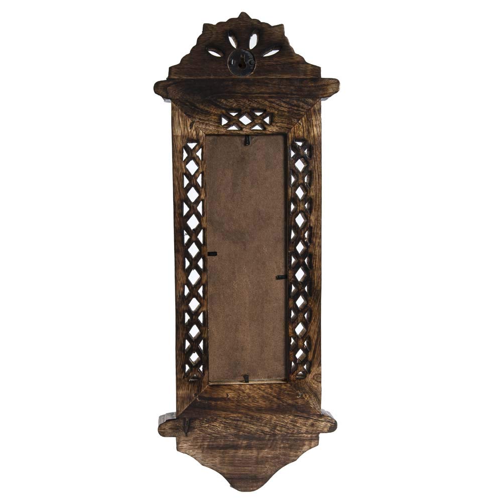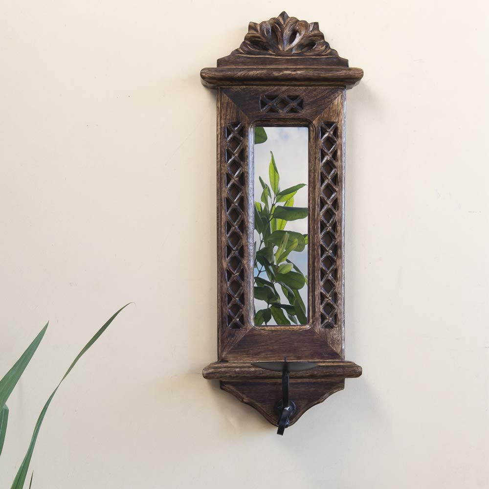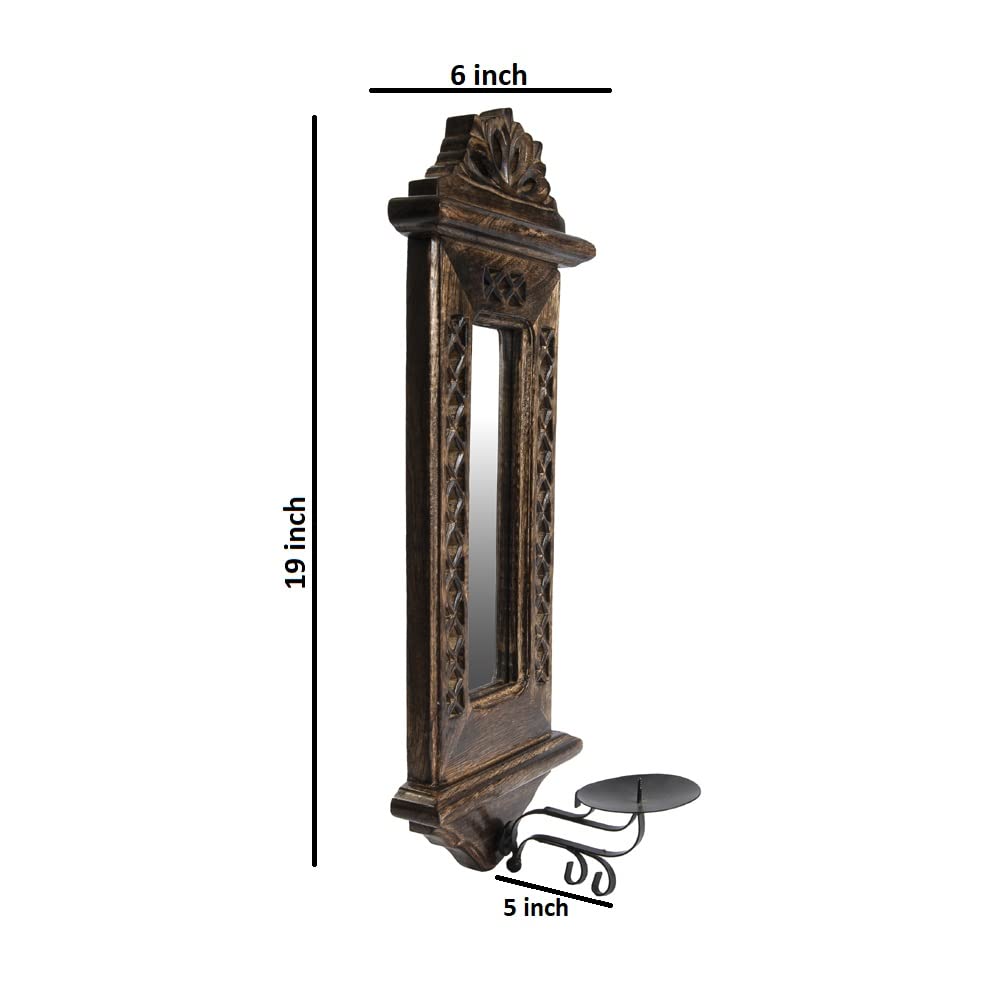 SAHARANPUR HANDICRAFTS Handcrafted Wooden Wall Hanging Mirror Reflection Candle Holder | Pillar Candle Stand with Mirror for Living Room | Wall Mounted Candle Holders for Home Decor | Mirrored Candle Holder | Pack of 1 (19 X 6 X 0.5 Inch)
