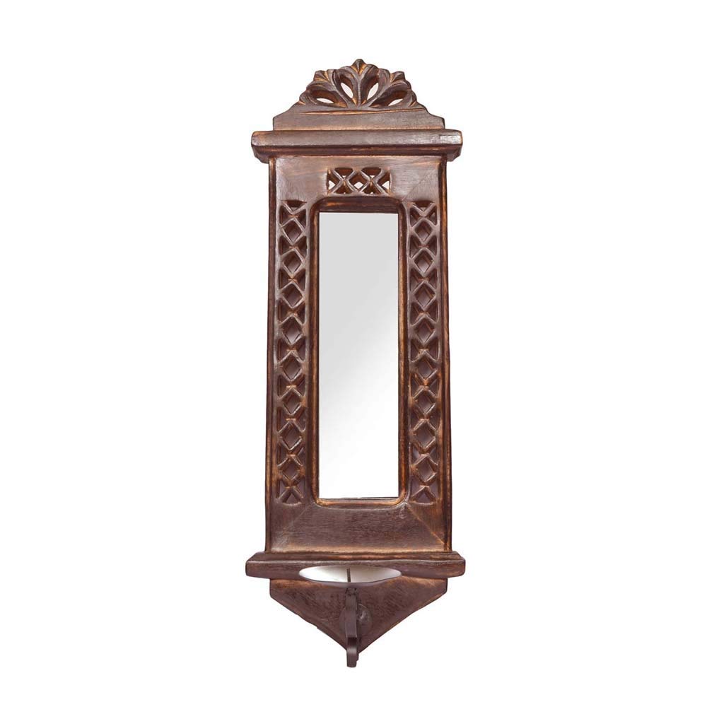 HomeHomeWall AccentsHangingSAHARANPUR HANDICRAFTS Handcrafted Wooden Wall Hanging Mirror Reflection Candle Holder | Pillar Candle Stand with Mirror for Living Room | Wall Mounted Candle Holders for Home Decor | Mirrored Candle Holder | Pack of 1 (19 X 6 X 0.5 Inch)