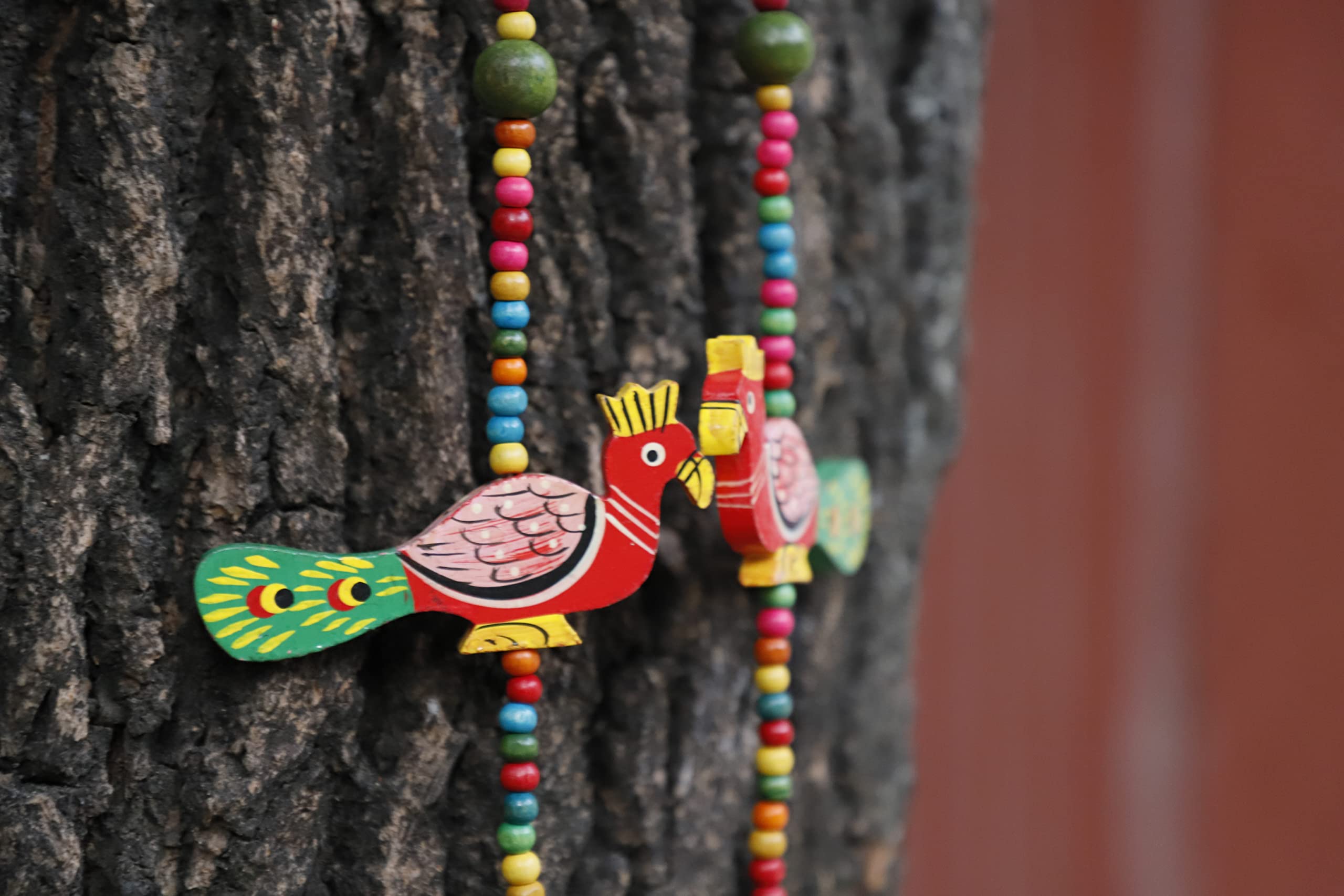 Torans are traditional decorative hangings that can be hanged on doors as well as walls and can be used on many occasions like Pooja Festivals Housewarming Parties Marriages and inaugurations etc. An effortless way to add luster to your festive gala. These door hangings are perfect for creating a grand look for your door A symbol of happiness and charm. Unique Design Traditional Look Easy to Clean Durable Auspicious Economical This Artistically Handcrafted Auspicious Bandan war Toran door hanging decorated with colorful wooden beads and wooden Elephant face in center is perfect for door decorations or main doors
