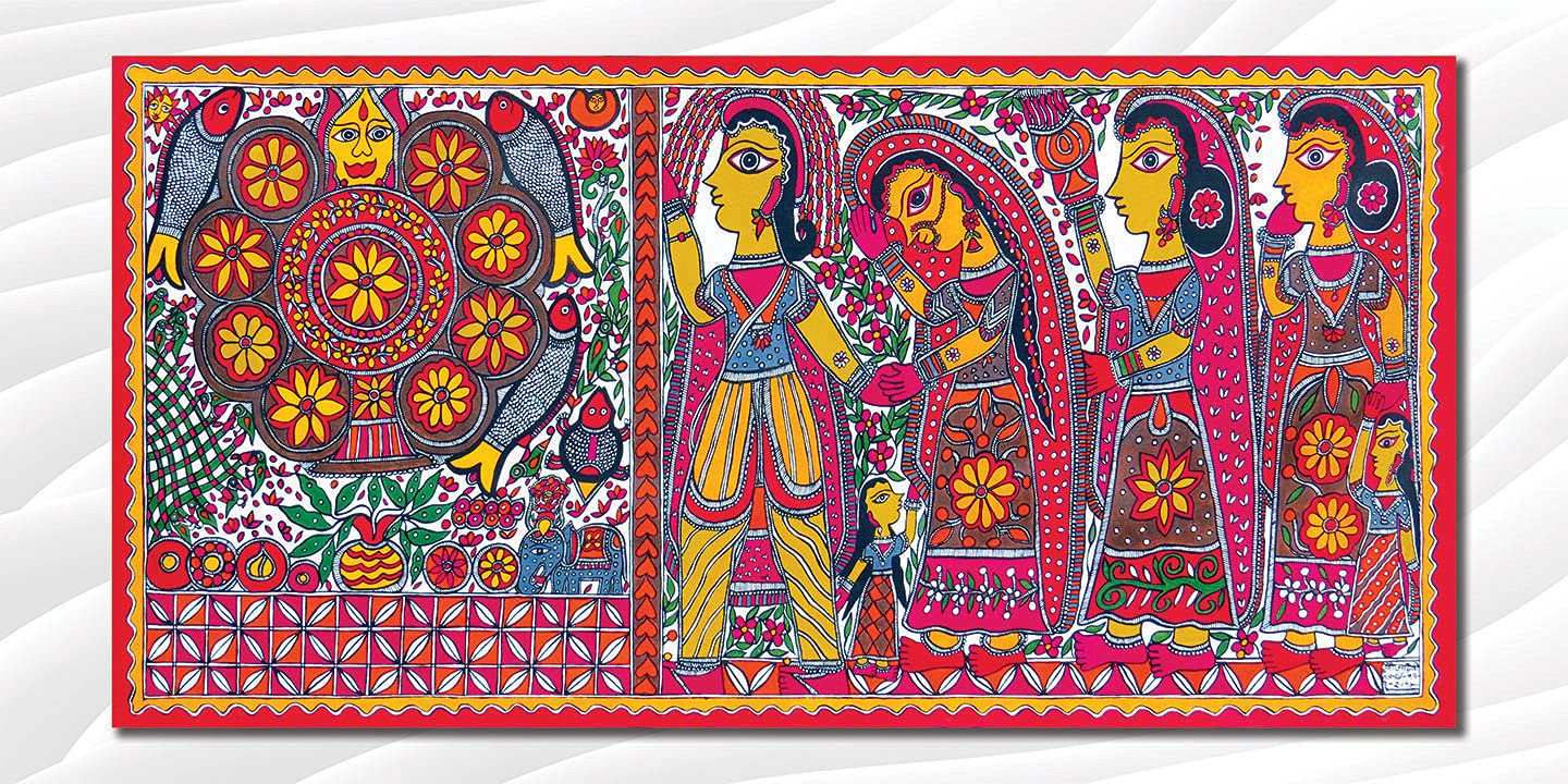 MADHUBANI PAINTINGS - Laminated Paper Poster - After Wedding - Traditional Art - Madhubani Art - Laminated Paper (Laminated Paper Size 34X17 Inches MultiColor)